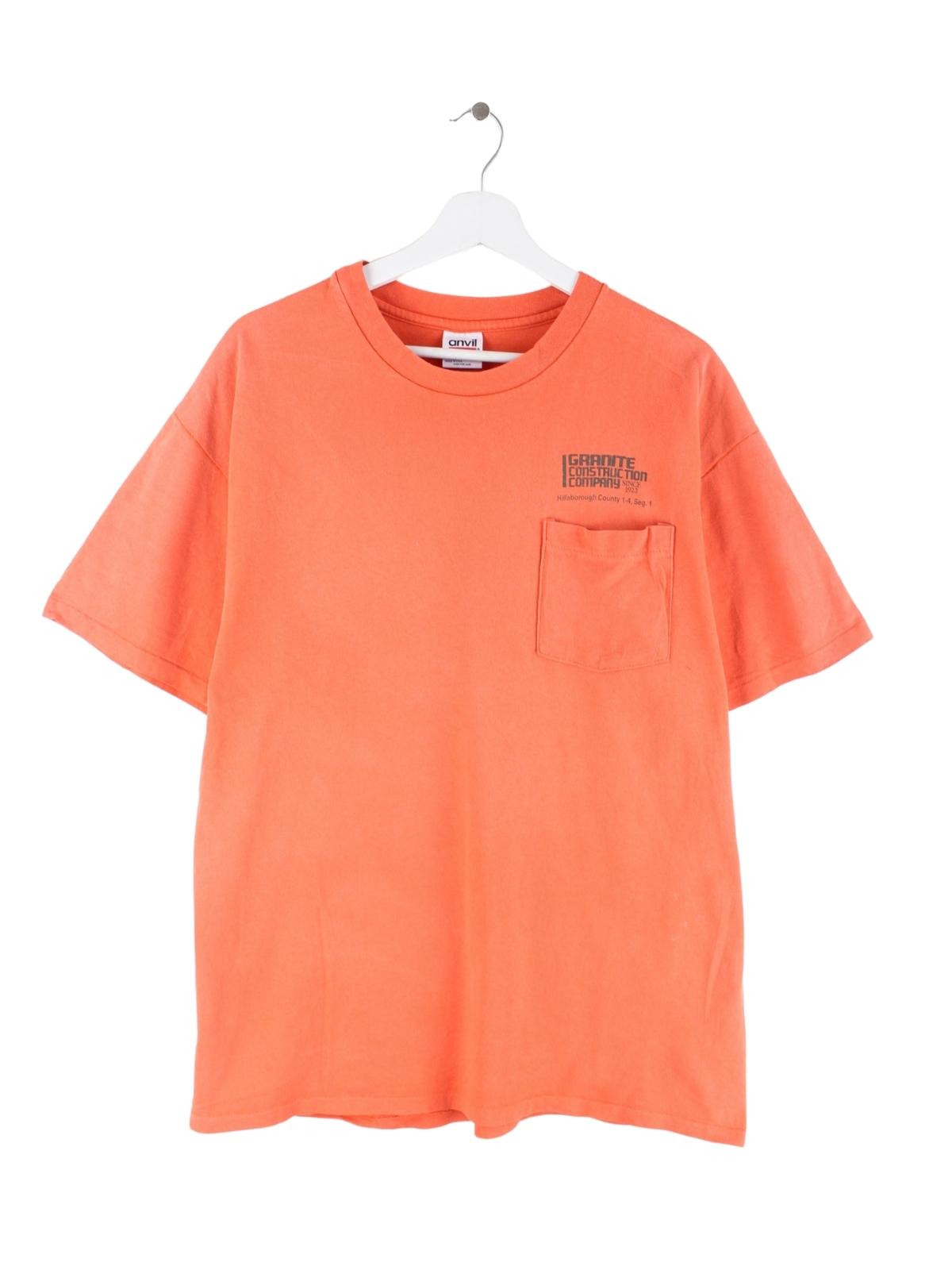 Orangefarbenes T-Shirt vom Brand Anvil aus den 90'ern in Größe XL. Es ist aus Baumwolle hergestellt und in gutem Zustand zu haben.