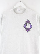 Graues T-Shirt der Brand Anvil aus den 90'ern in Größe L. Es ist aus Baumwolle gefertigt und in sehr gutem Zustand vorrätig. Mit schönem Vintage Print.
