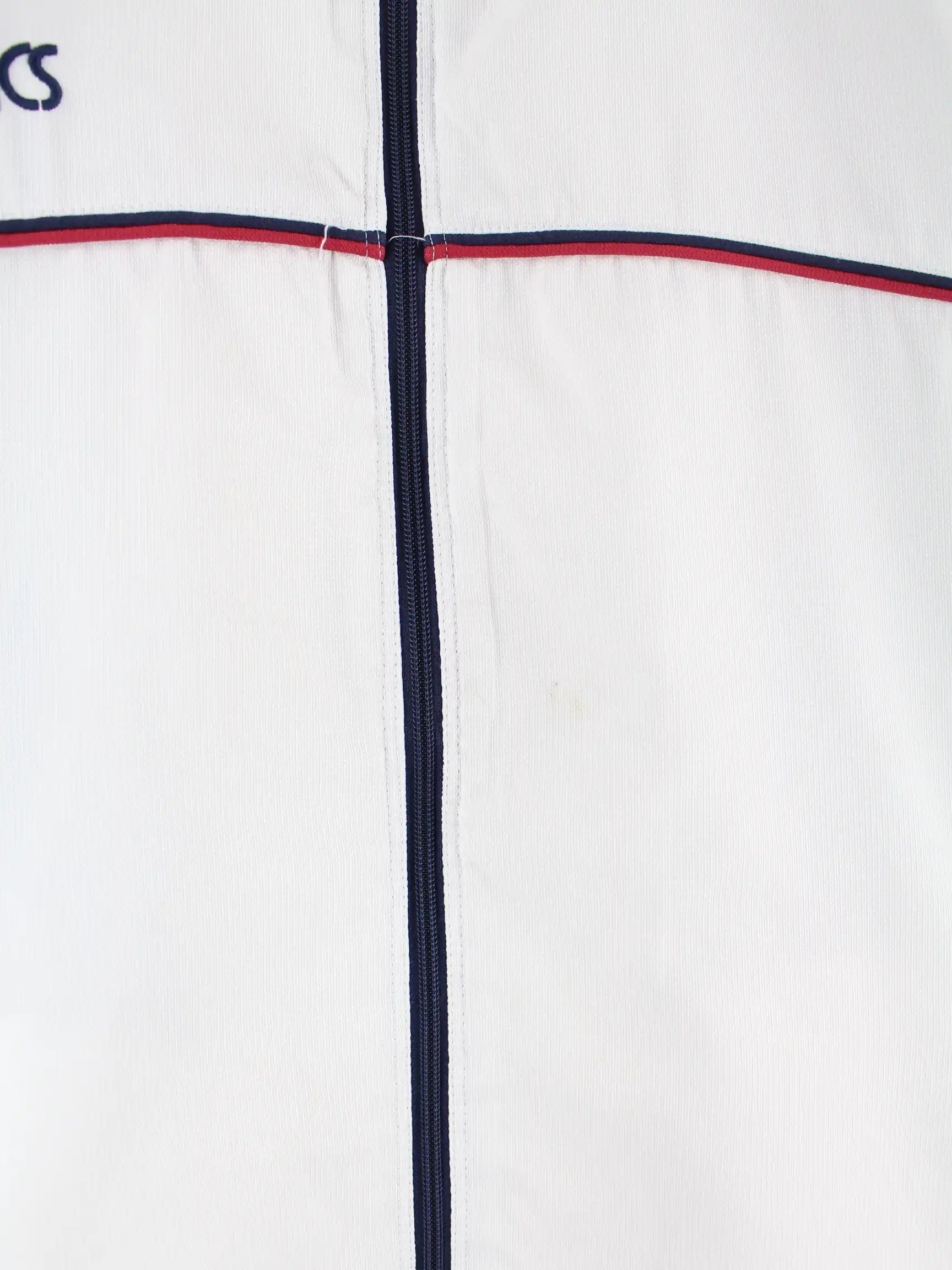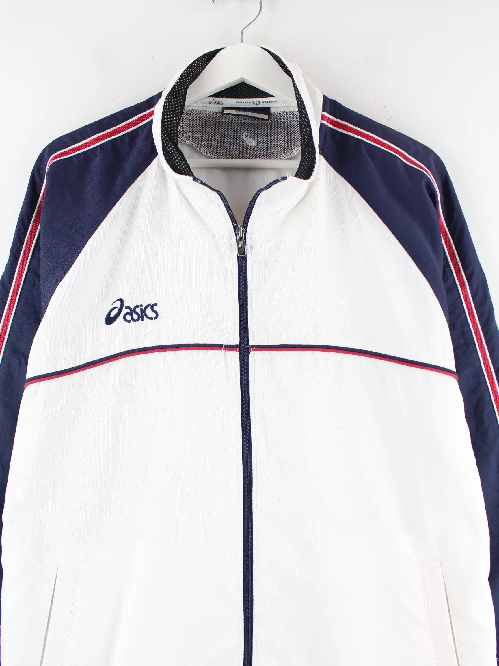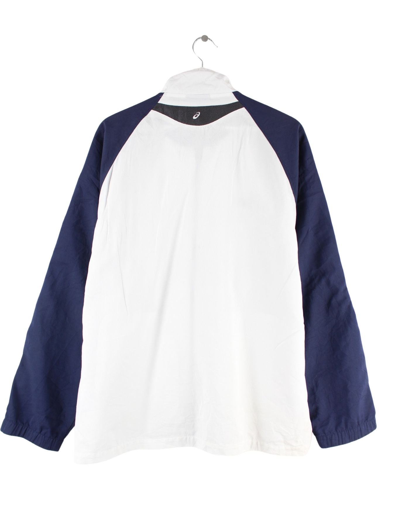Trainingsjacke der Marke Asics in Größe XL. Sie ist aus Synthetik angefertigt und in Weiß im Angebot.