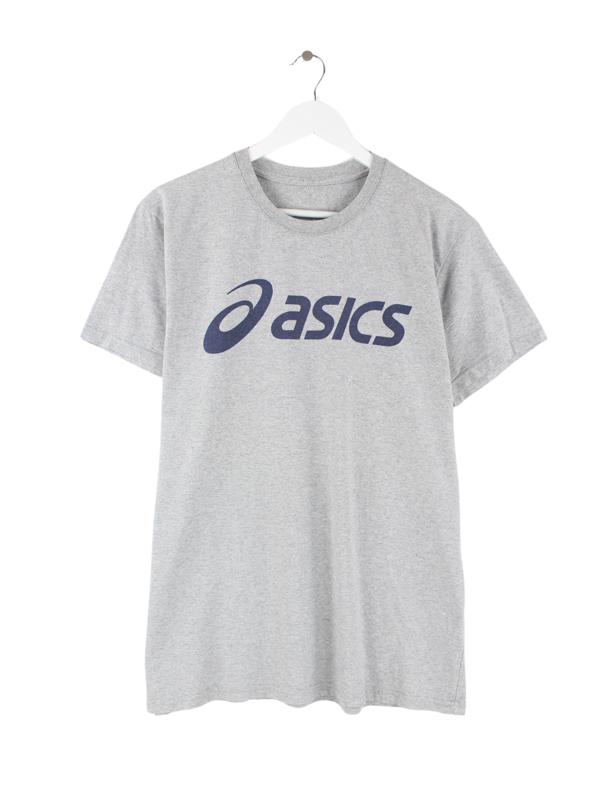 T-Shirt aus dem Hause Asics in Größe L. Es ist aus Baumwolle produziert und in Grau in Stock. Mit seltenem Print.