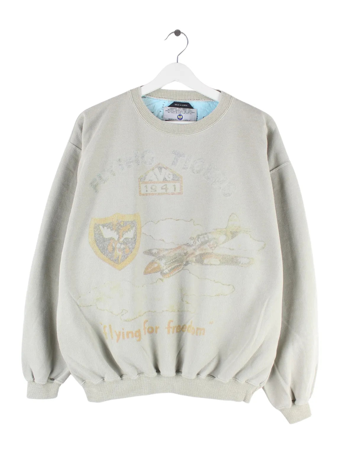 Avirex 90s Vintage Flying To Freedom Print Sweater Grau M
