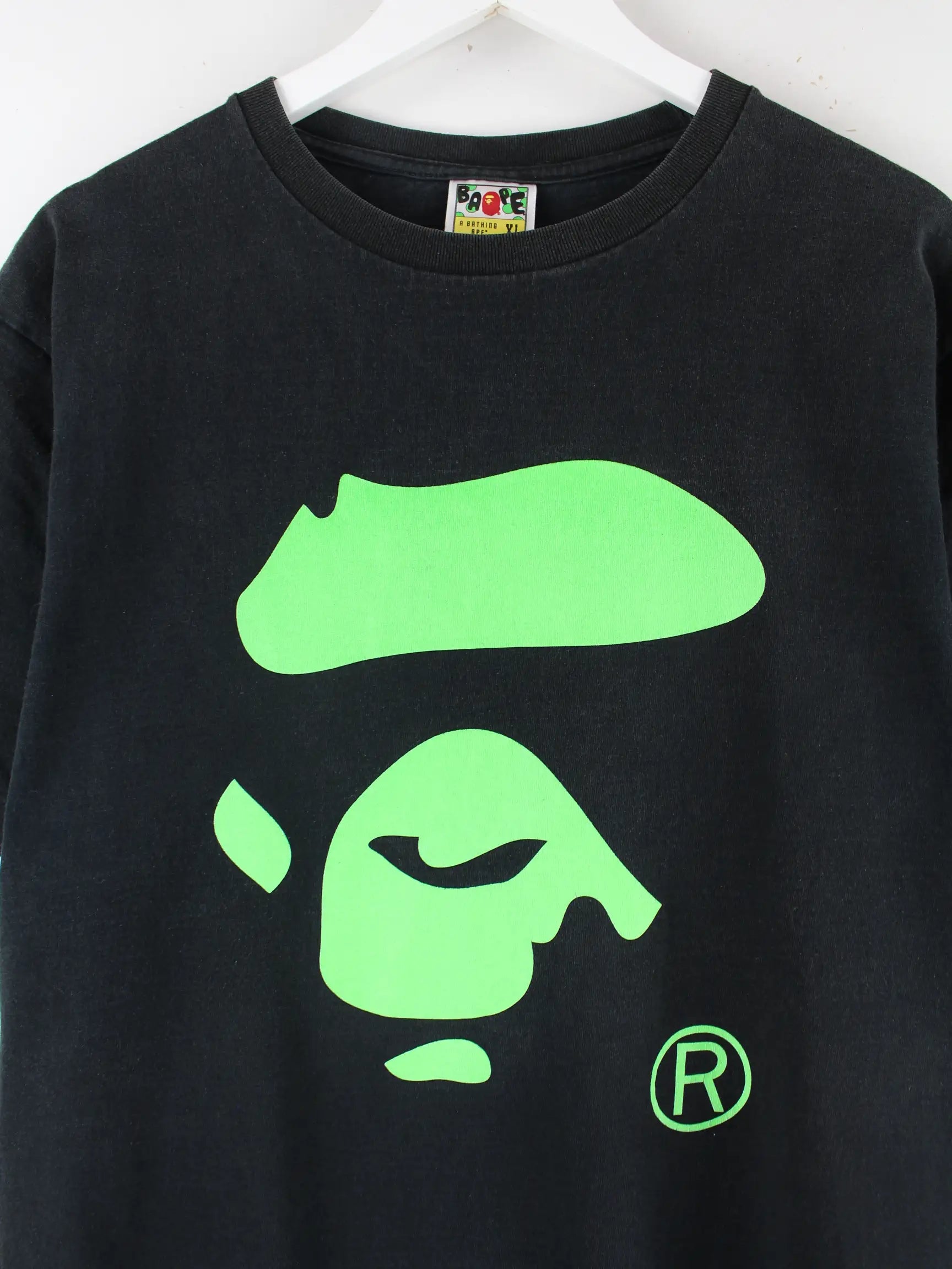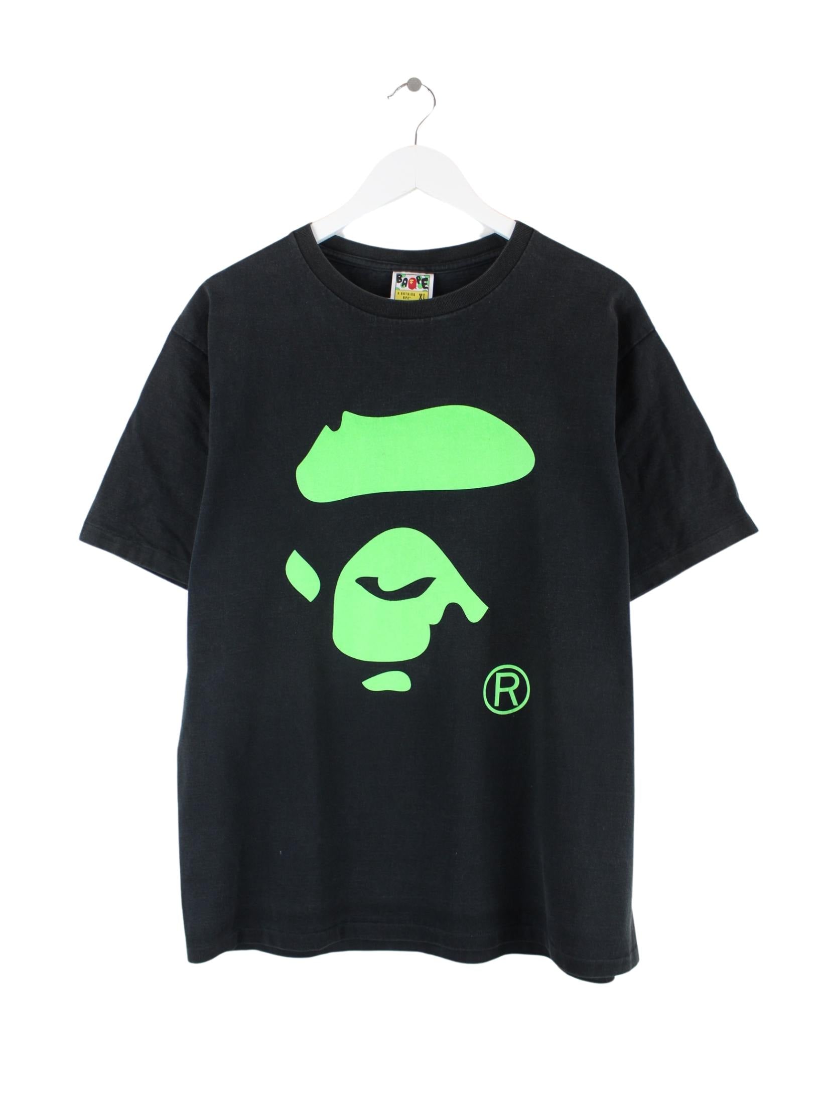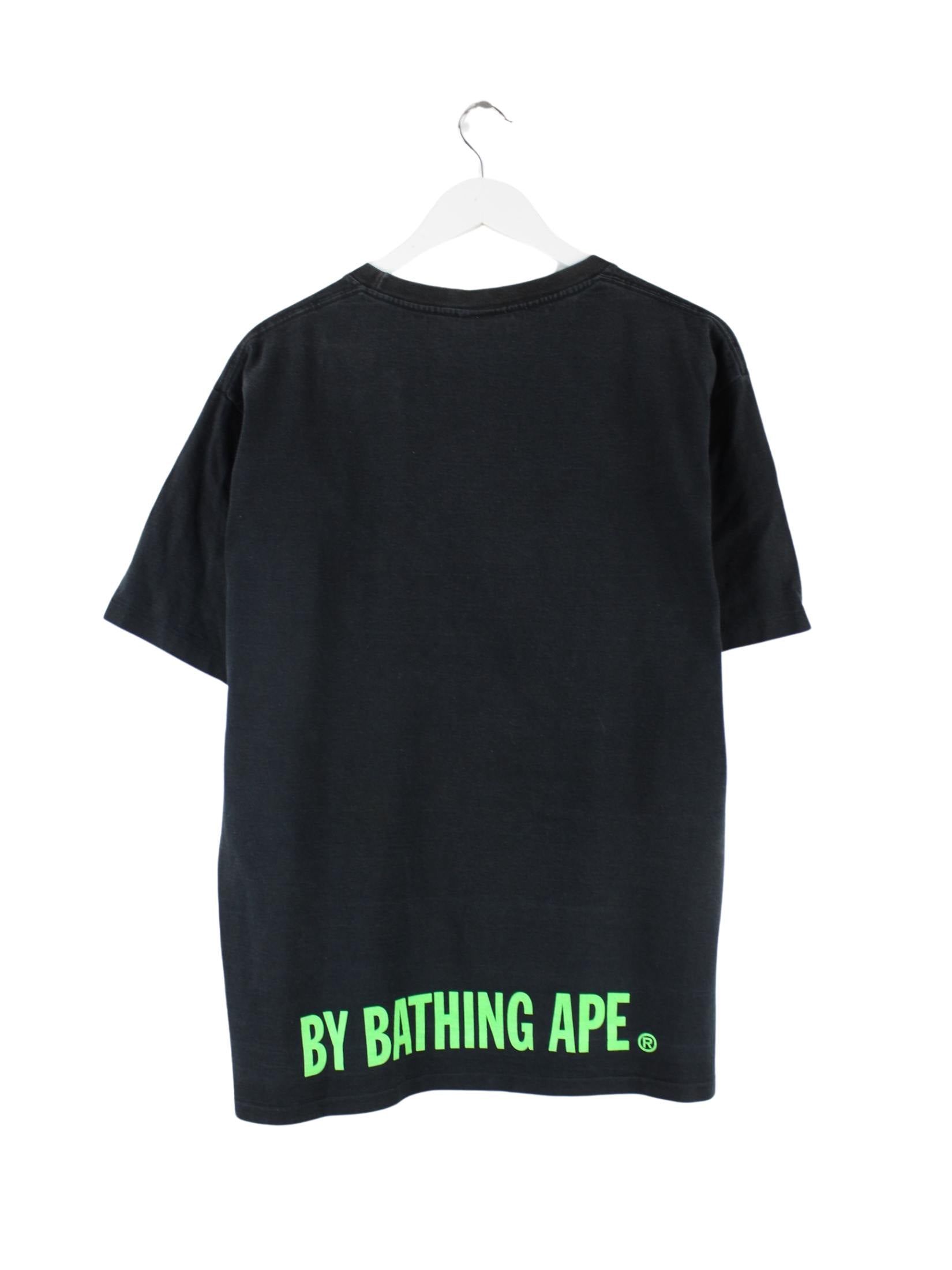 T-Shirt aus dem Hause Bape in Größe XL. Es ist aus einer Baumwollmischung und in Schwarz vorrätig. Mit chiquem undefined Print.