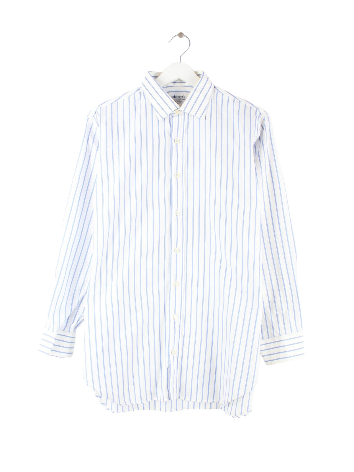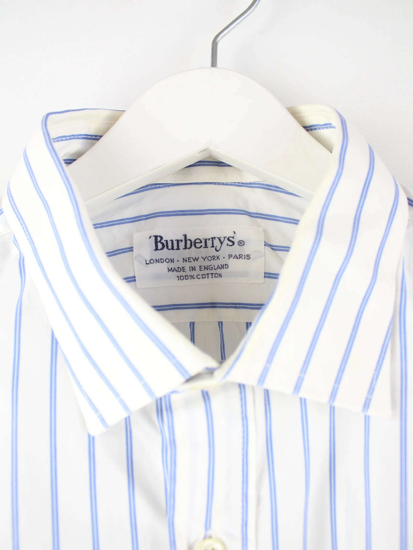 Weißes Hemd vom Label Burberry aus den 80'ern in Größe S. Es ist aus Baumwolle gemacht und in gutem Zustand zu haben.