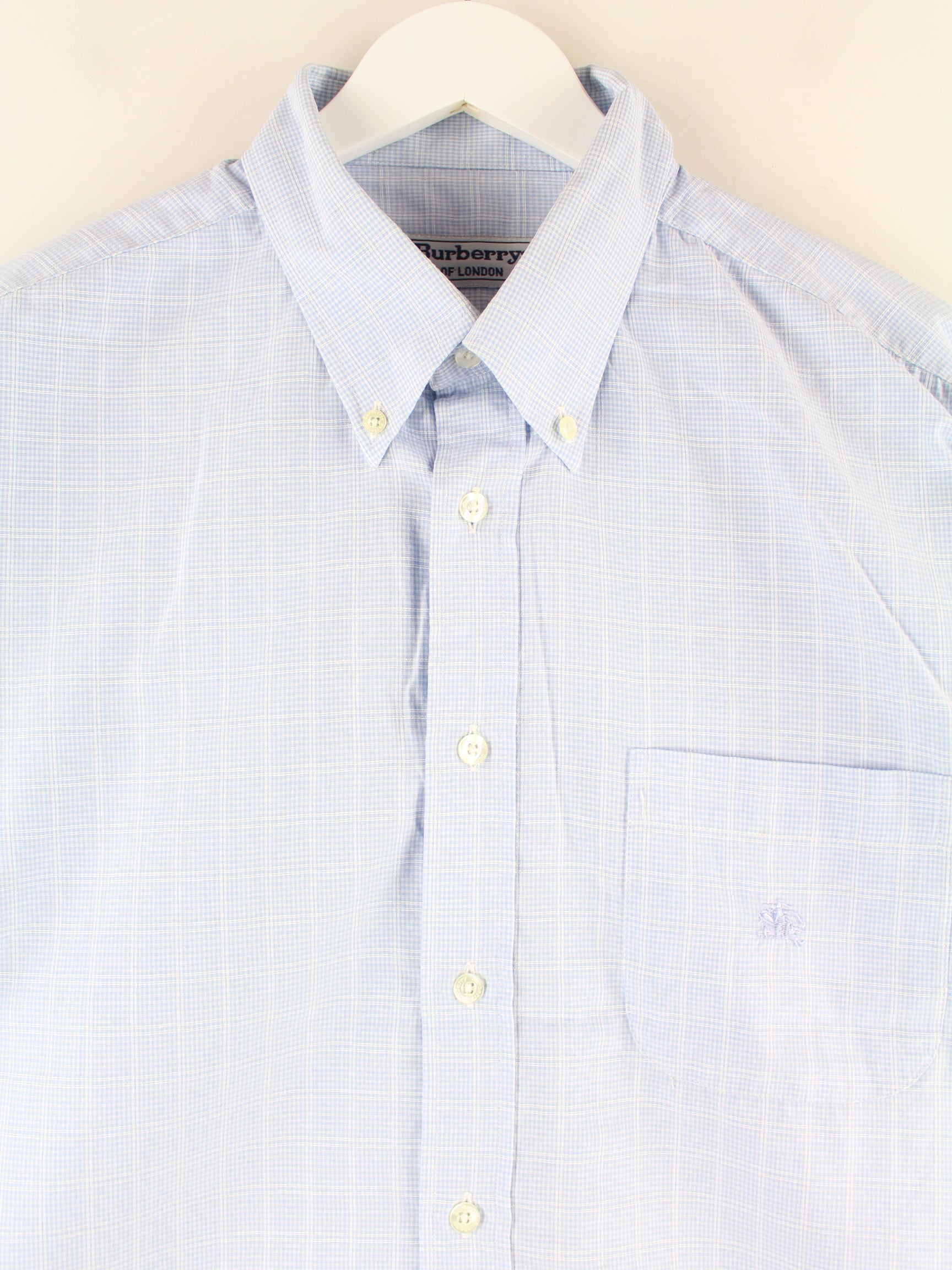 Shirt by Burberry in size XL from the 90's. It is made of cotton and is in stock in blue.