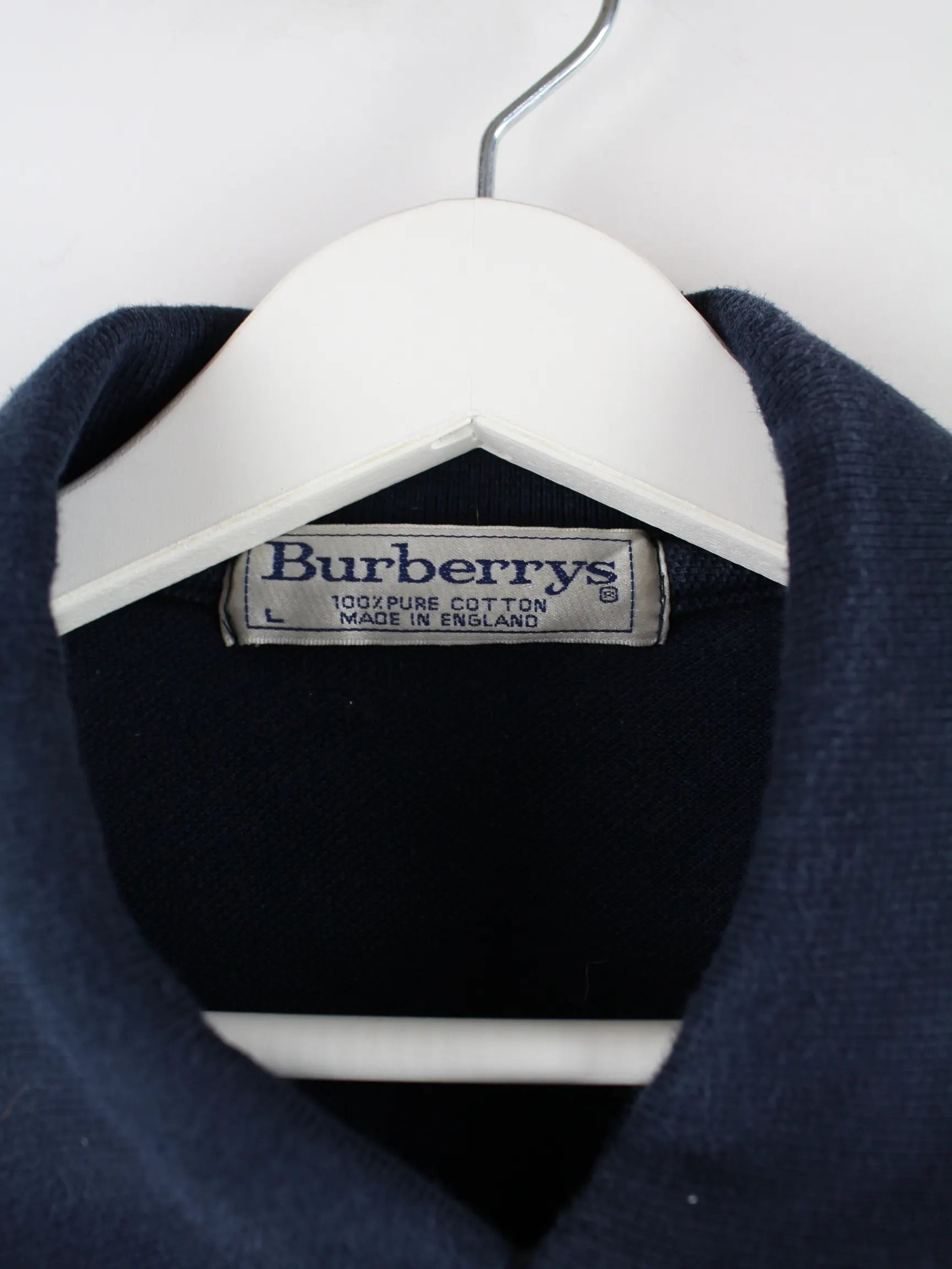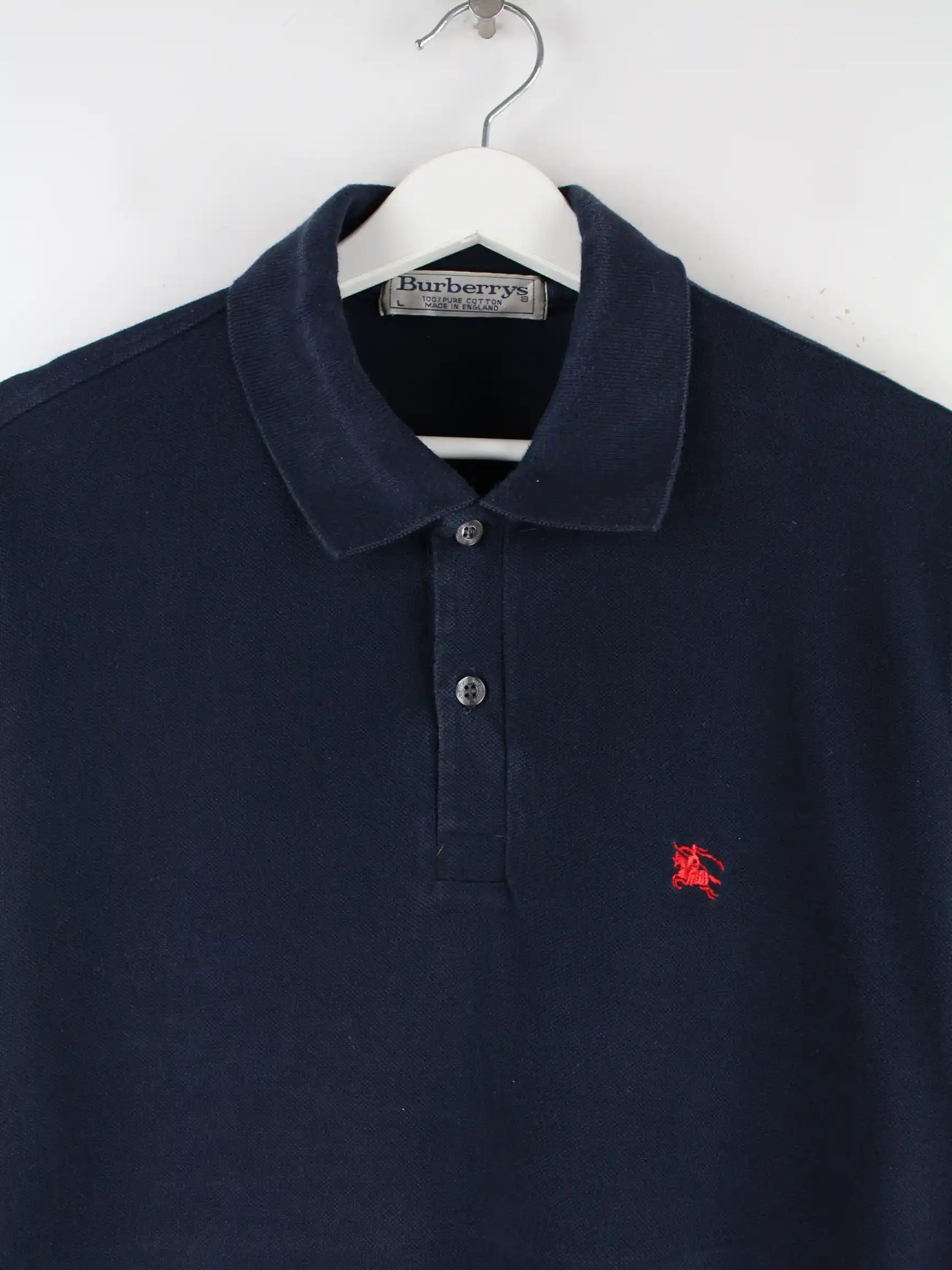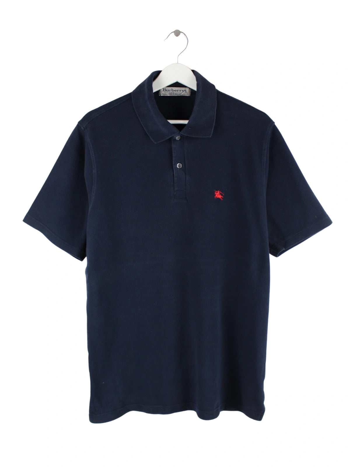 Poloshirt aus dem Hause Burberry in Größe L aus den 90'ern. Es ist aus Baumwolle gefertigt und in Blau im Bestand.