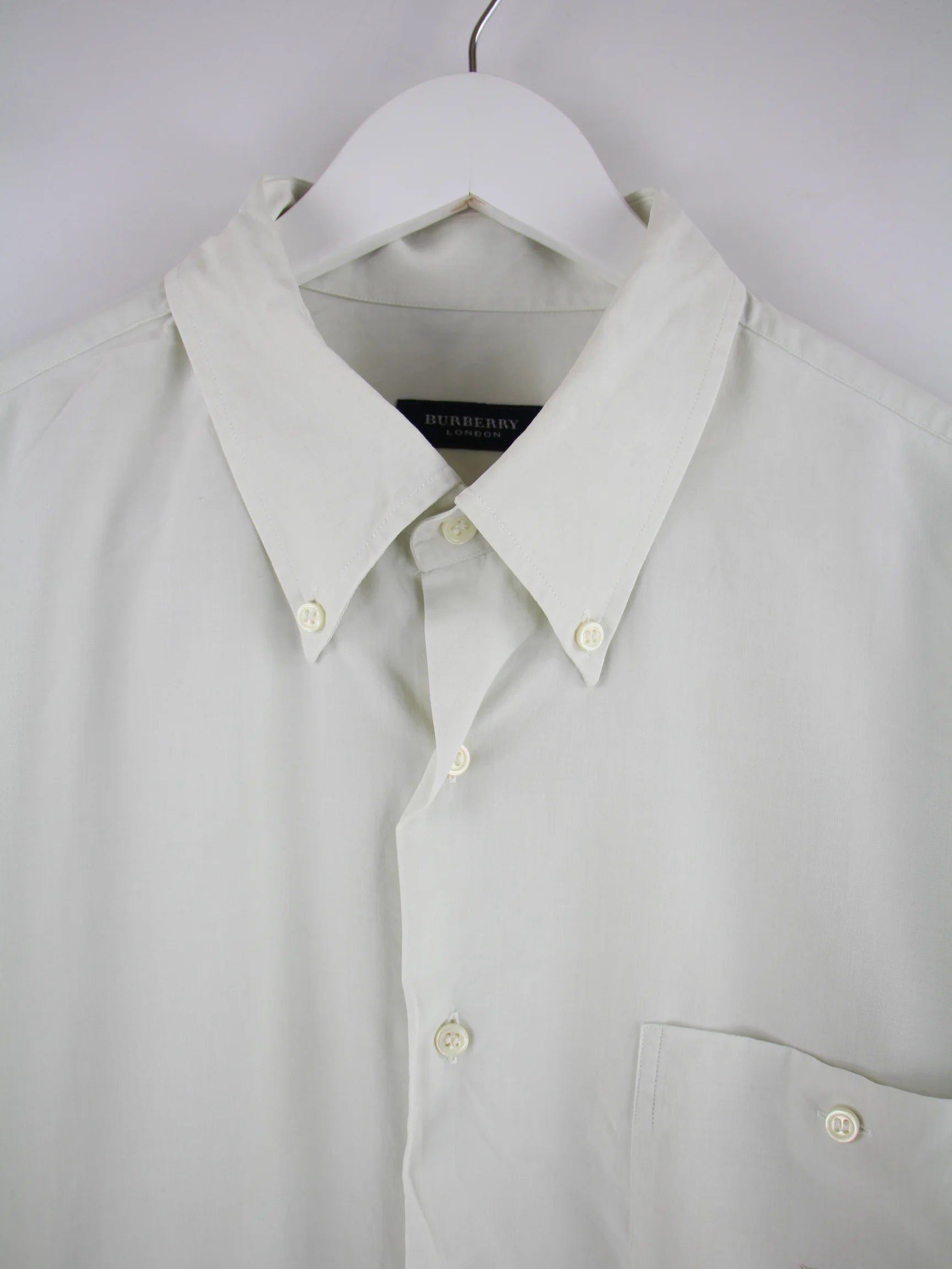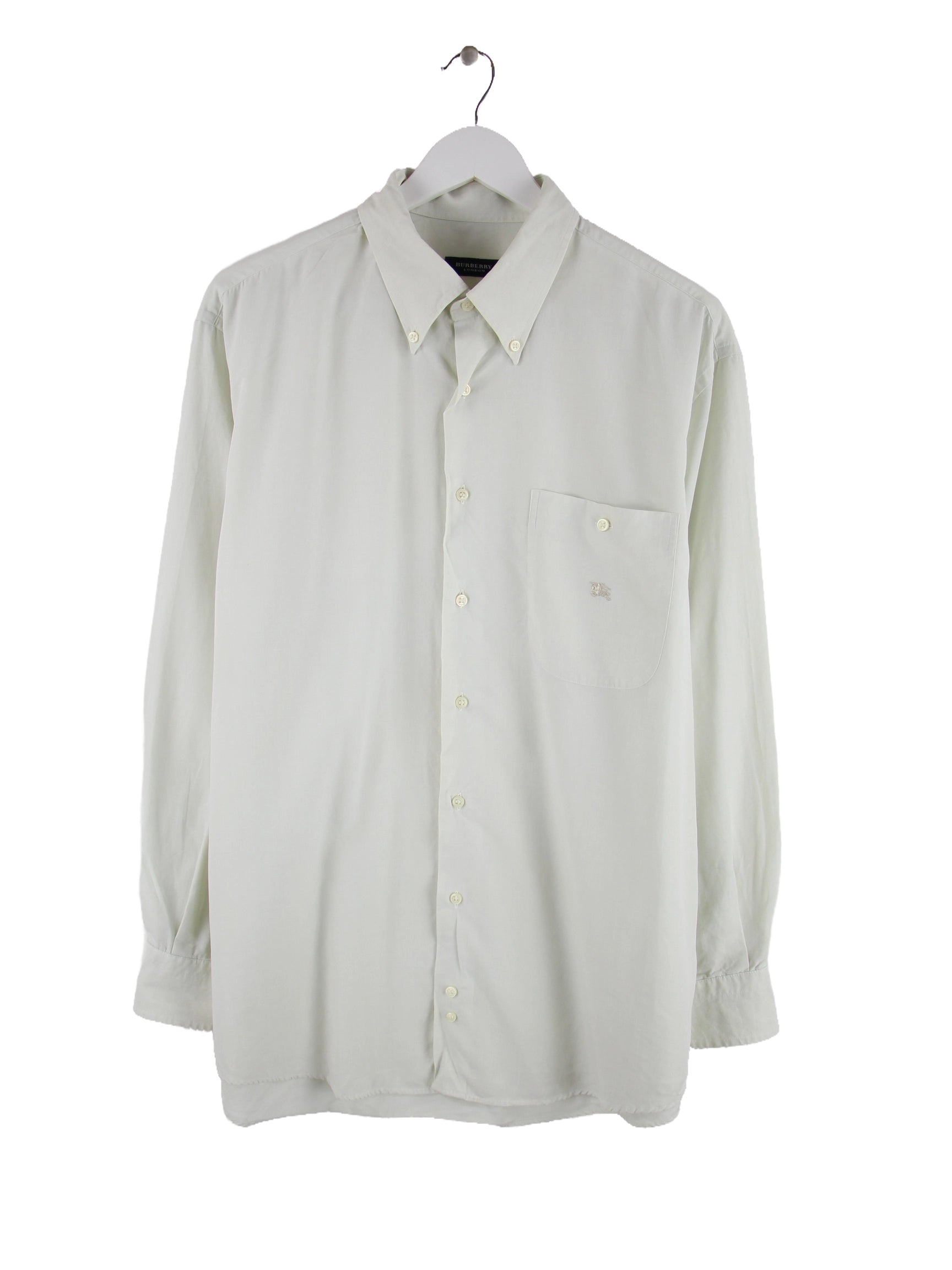 Graues Hemd vom Label Burberry in Größe M. Es ist aus Baumwolle produziert und in gutem Zustand bei uns zu bekommen.