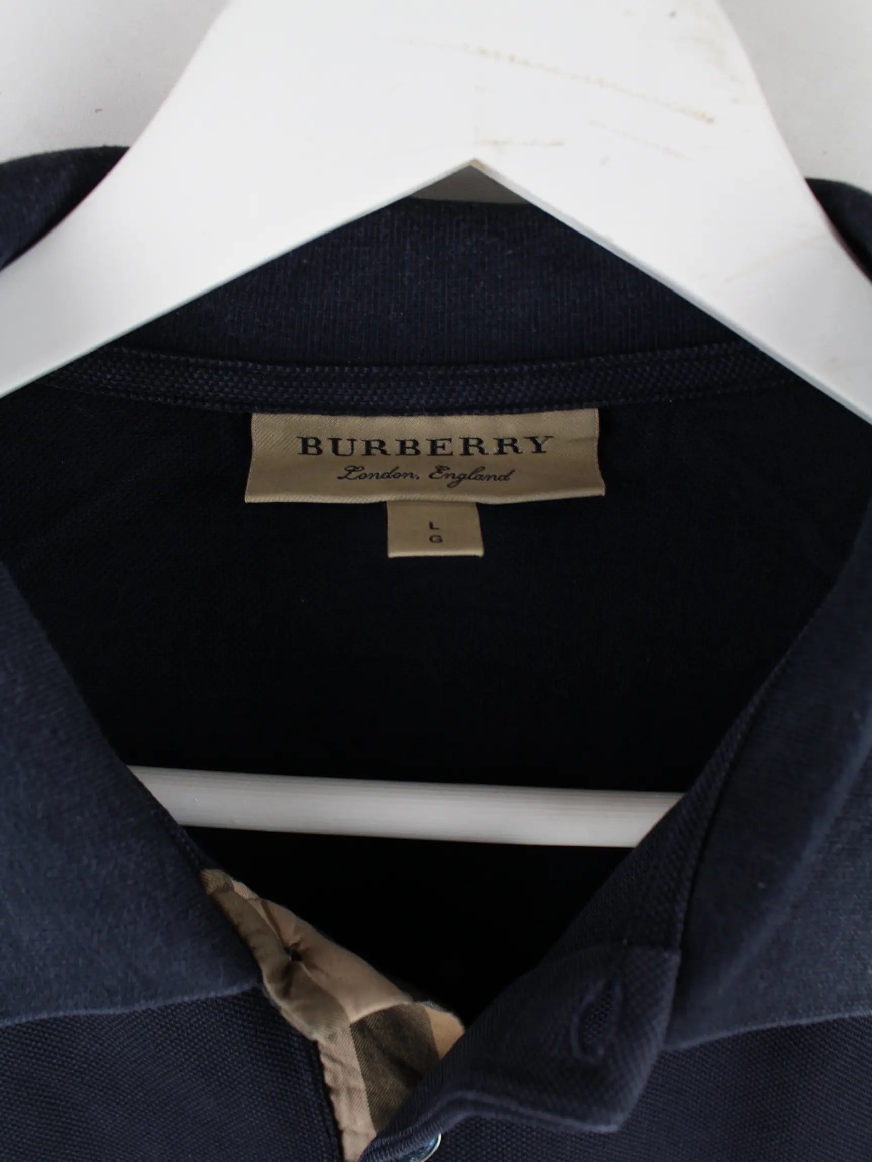 Schwarzes Poloshirt der Marke Burberry in Größe L. Es ist aus Baumwolle angefertigt und in sehr gutem Zustand bei uns zu bekommen.