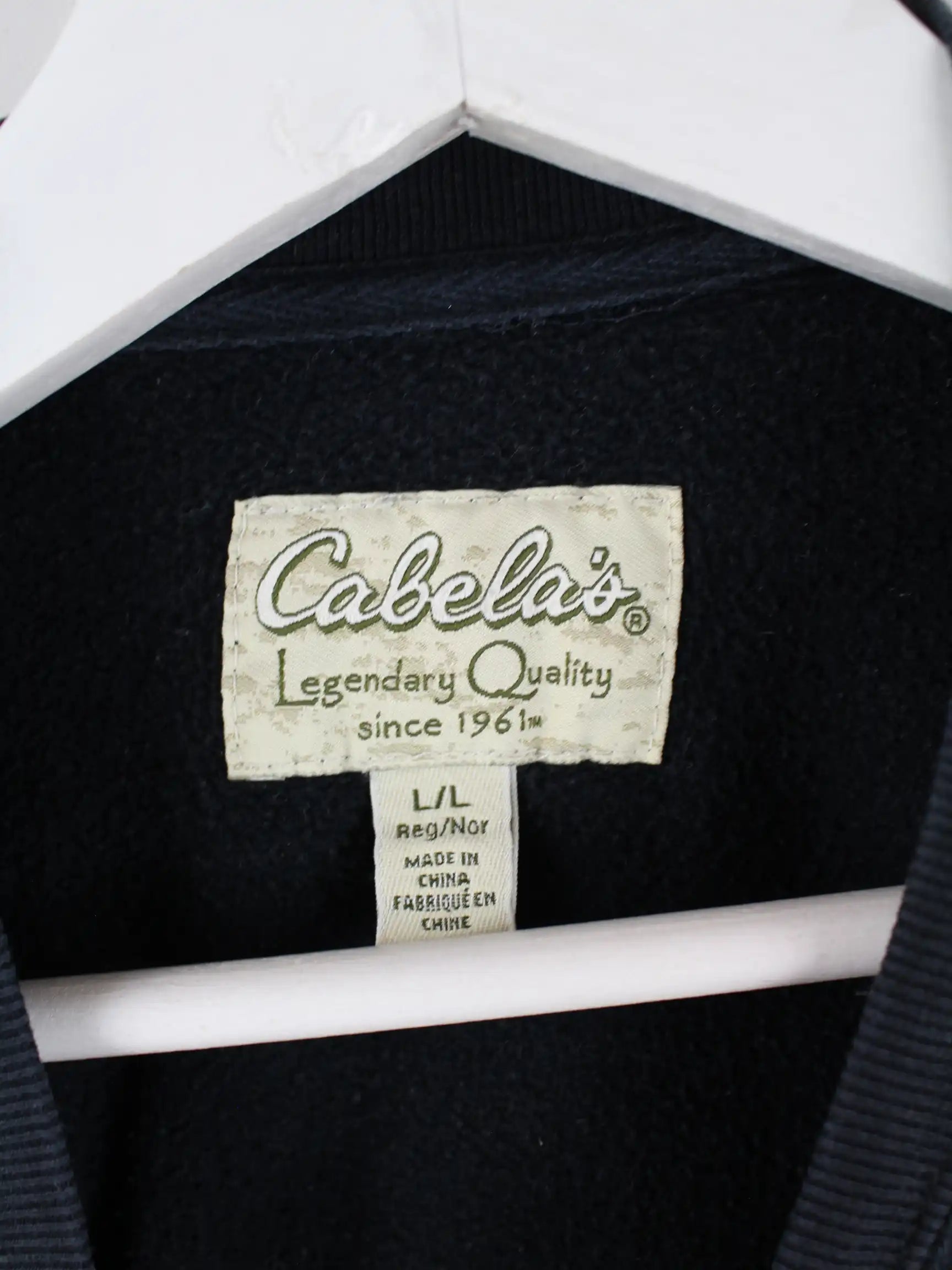 Schwarzer Sweater von Cabela's in Größe L. Er ist aus einer Baumwollmischung produziert und in sehr gutem Zustand vorrätig.