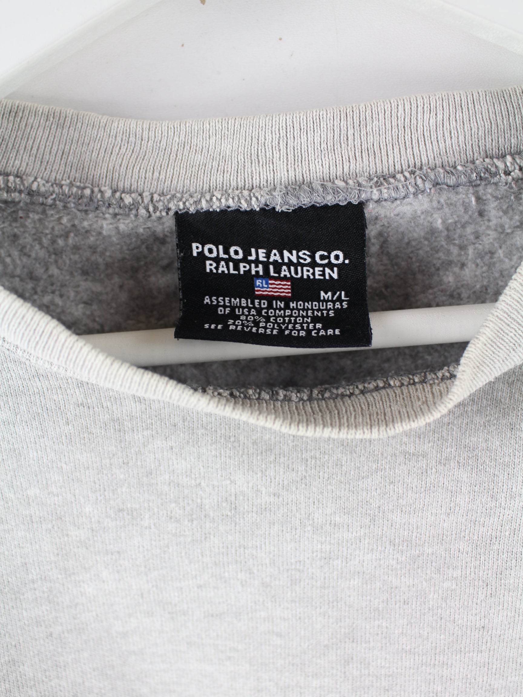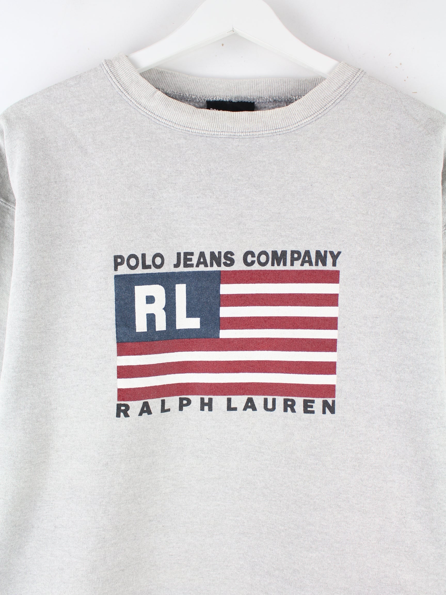 Sweater aus dem Hause Ralph Lauren in Größe M. Er ist aus einer Baumwollmischung und in Grau vorrätig. Mit schickem 00s Print.