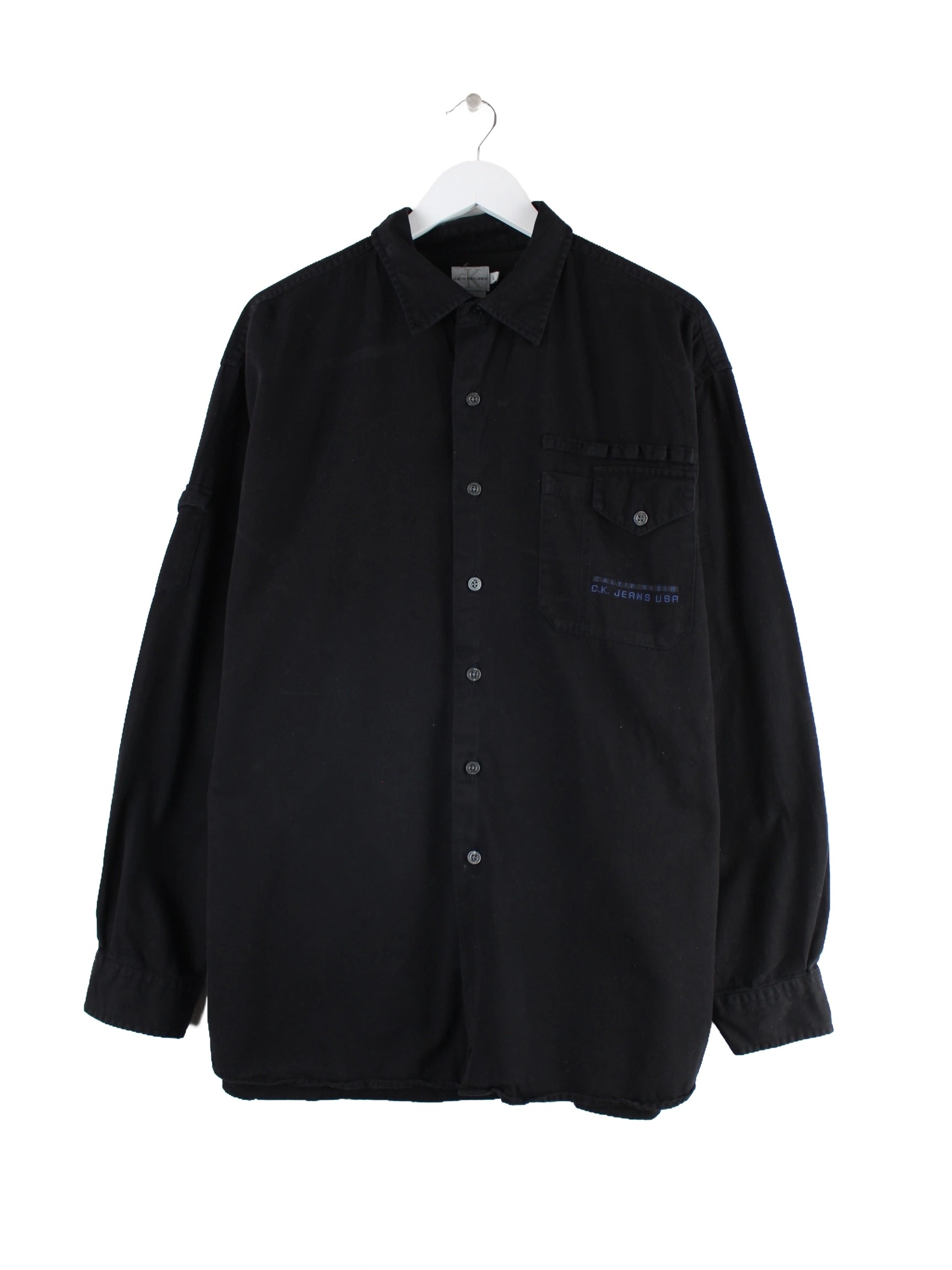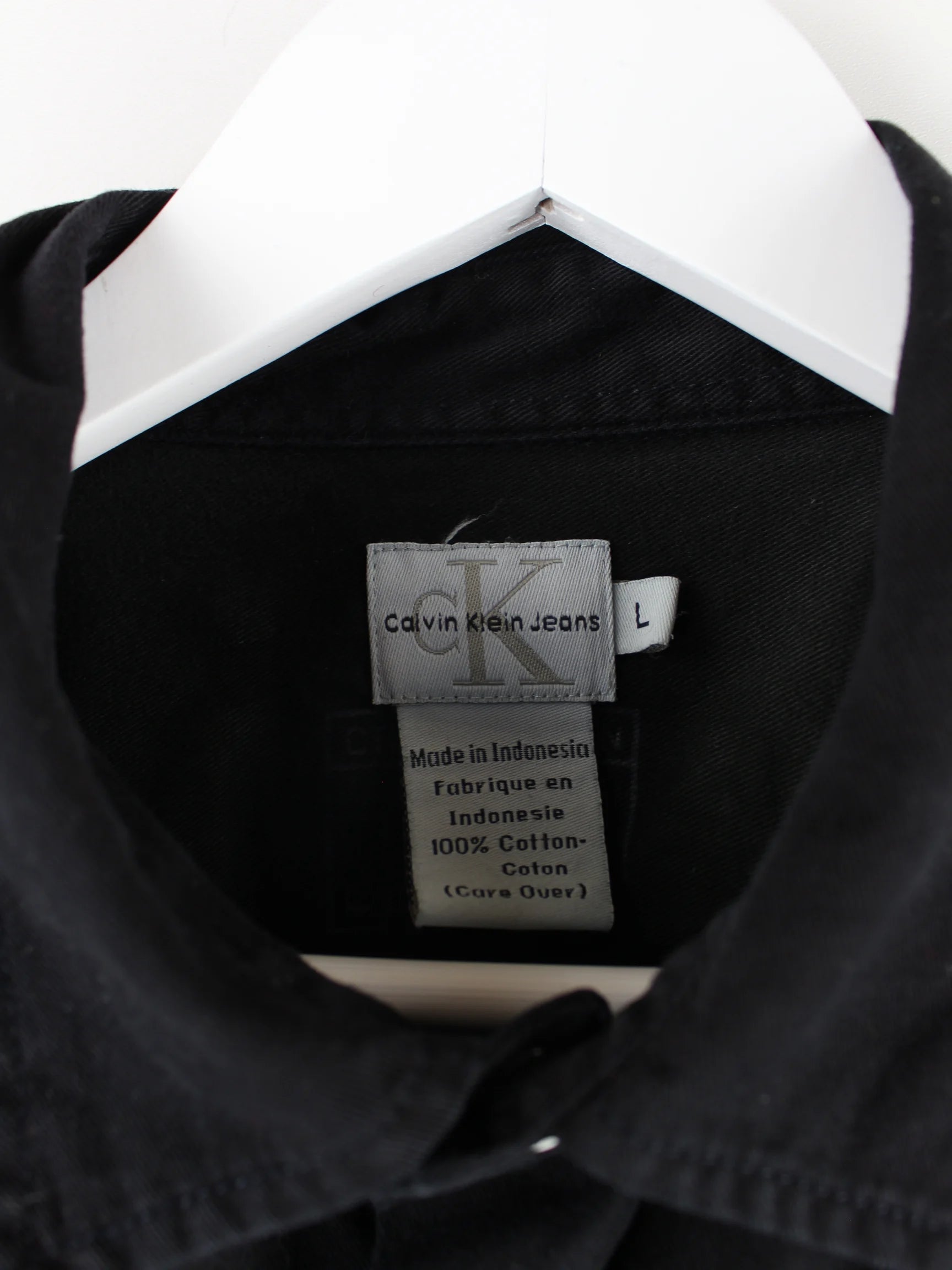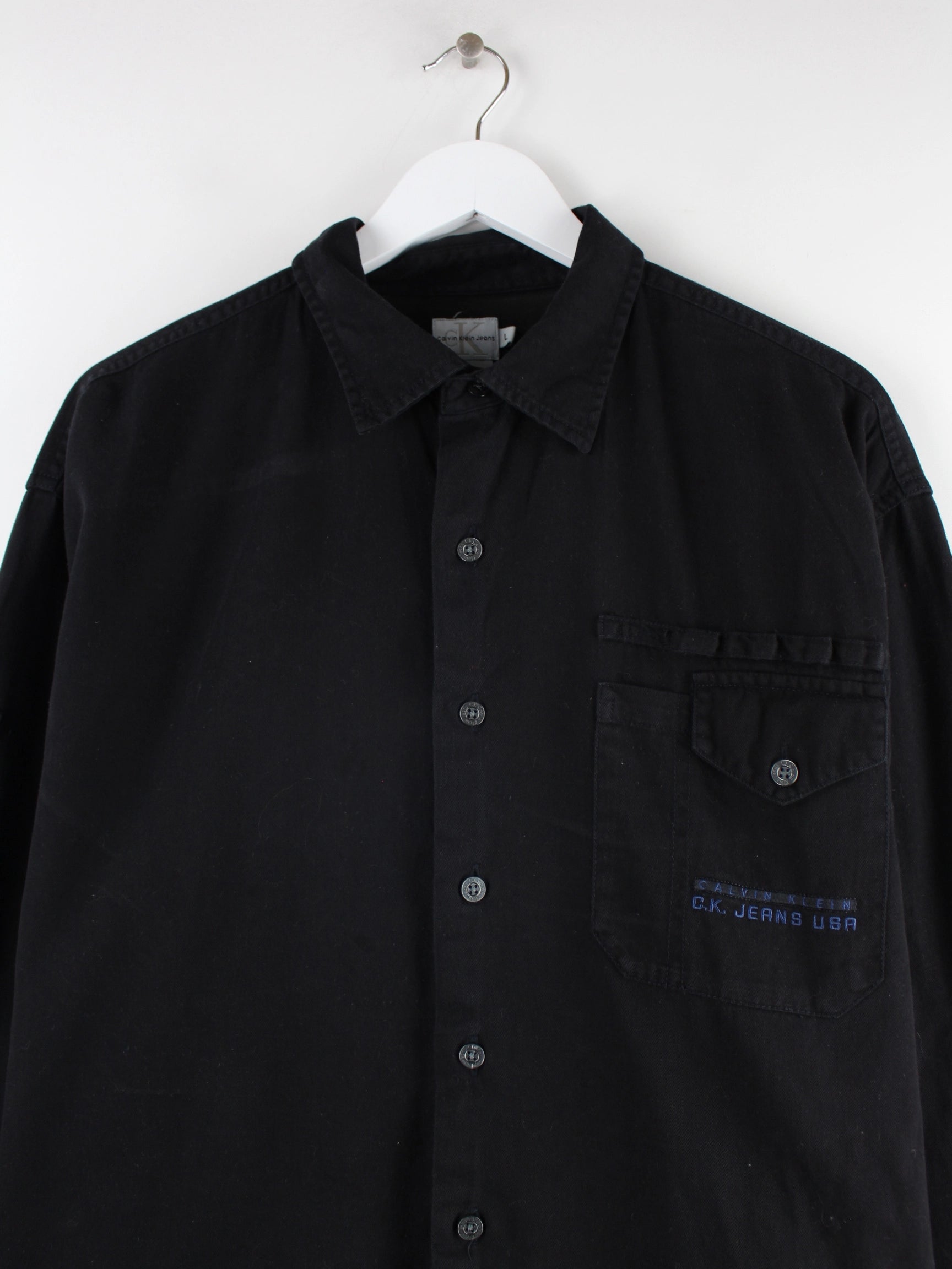 Schwarzes Freizeit Hemd vom Label Calvin Klein in Größe L. Es ist aus Baumwolle gemacht und in sehr gutem Zustand in Stock.