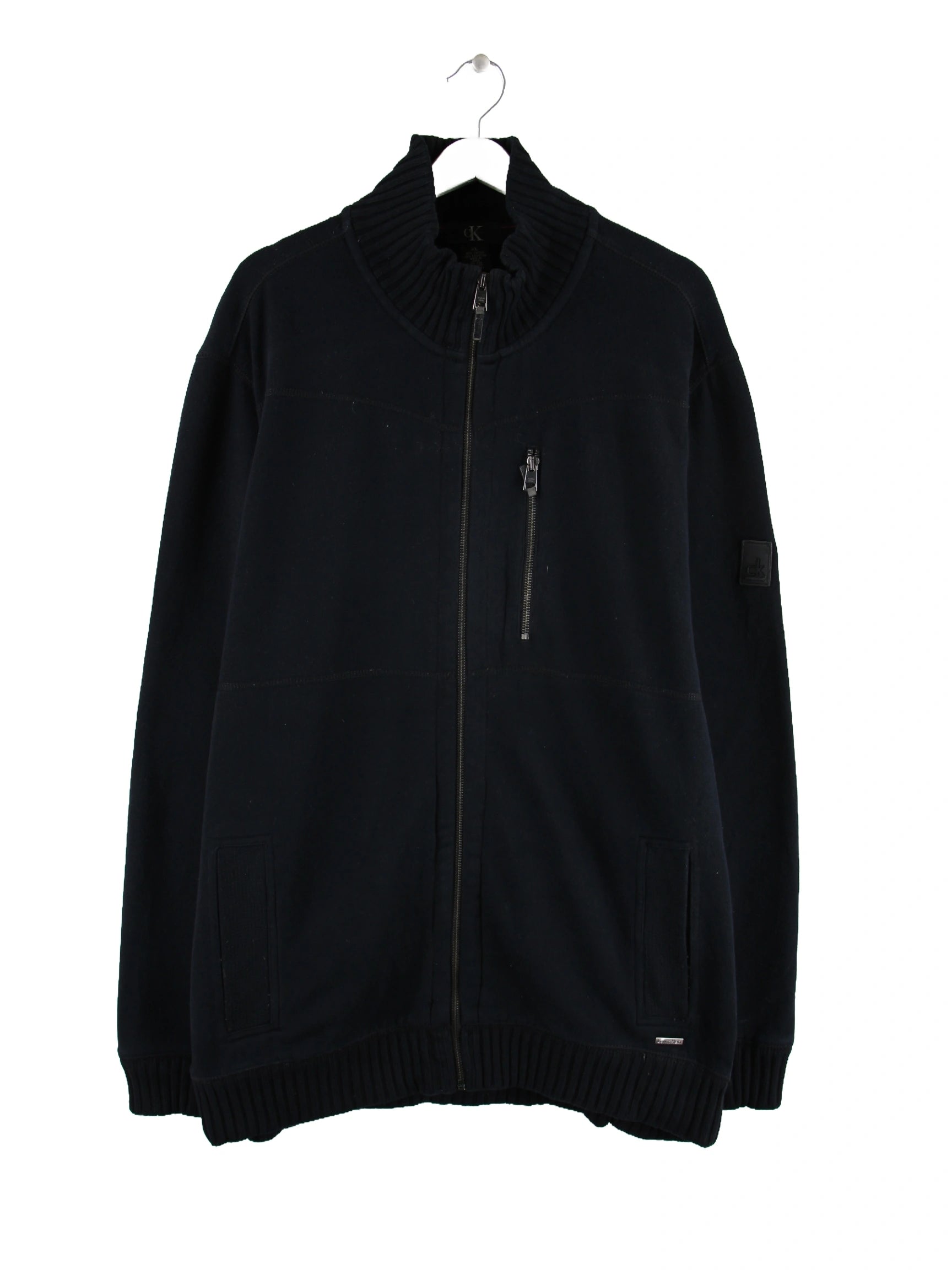 Schwarze Sweatjacke vom Label Calvin Klein in Größe XL. Sie ist aus einer Baumwollmischung gemacht und in sehr gutem Zustand bei uns vorrätig.