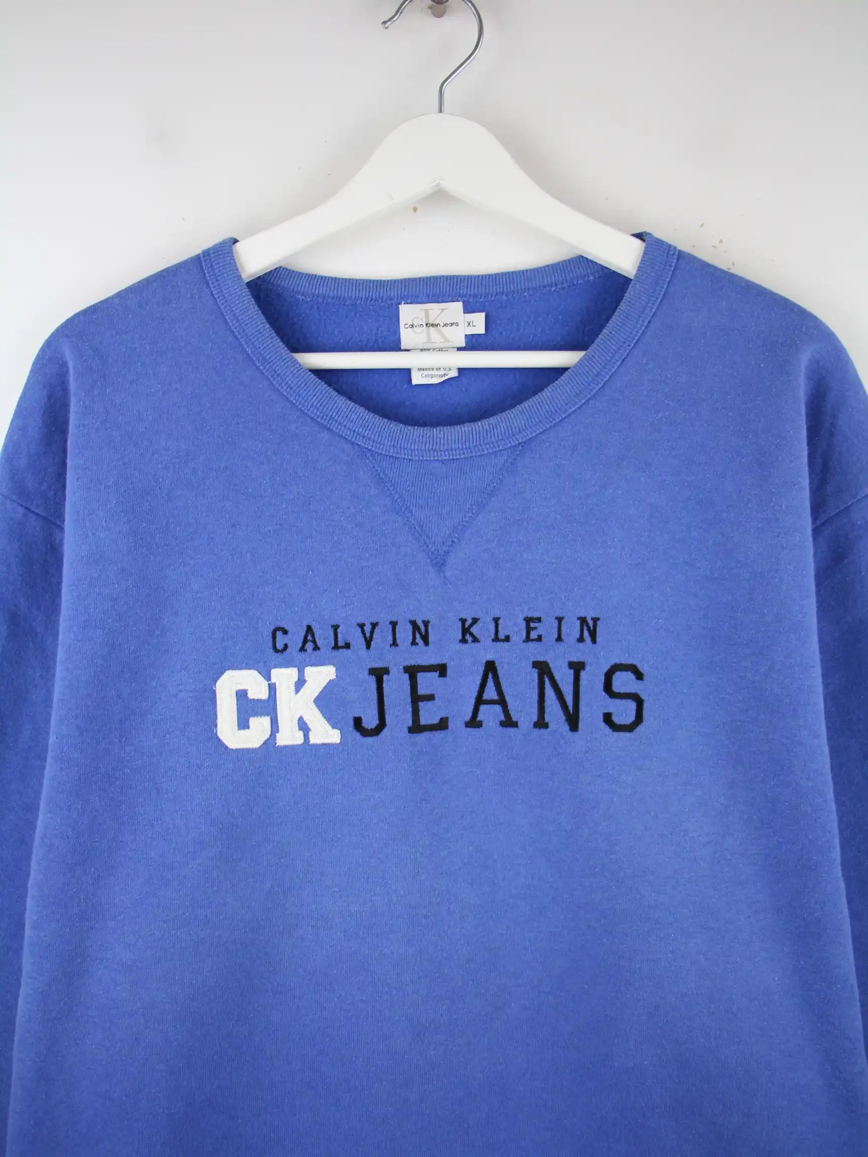 Sweater aus dem Hause Calvin Klein in Größe XL. Er ist aus einer Baumwollmischung und in Blau auf Lager.