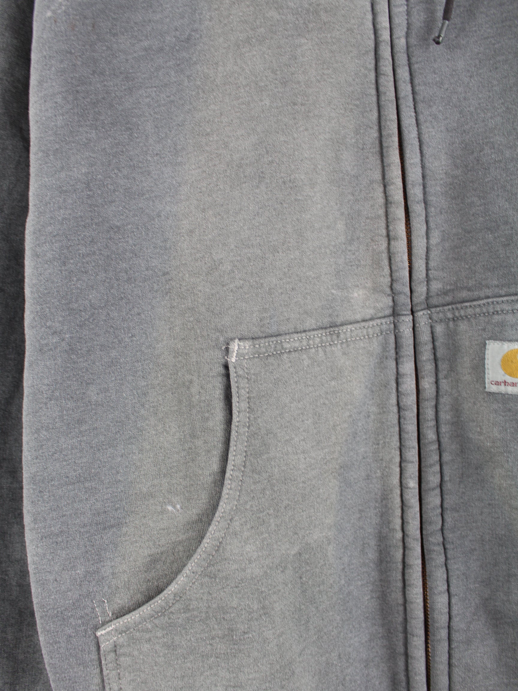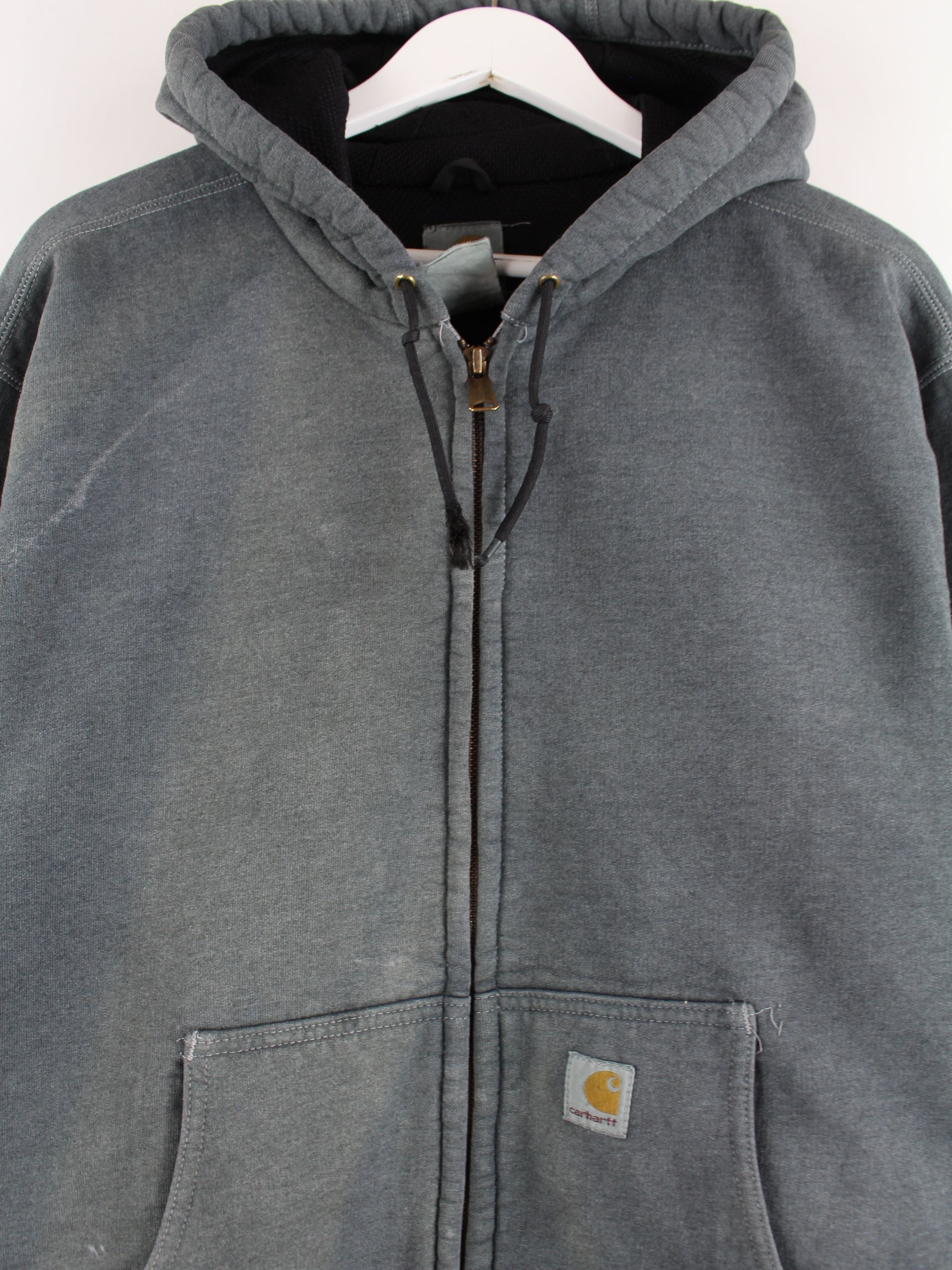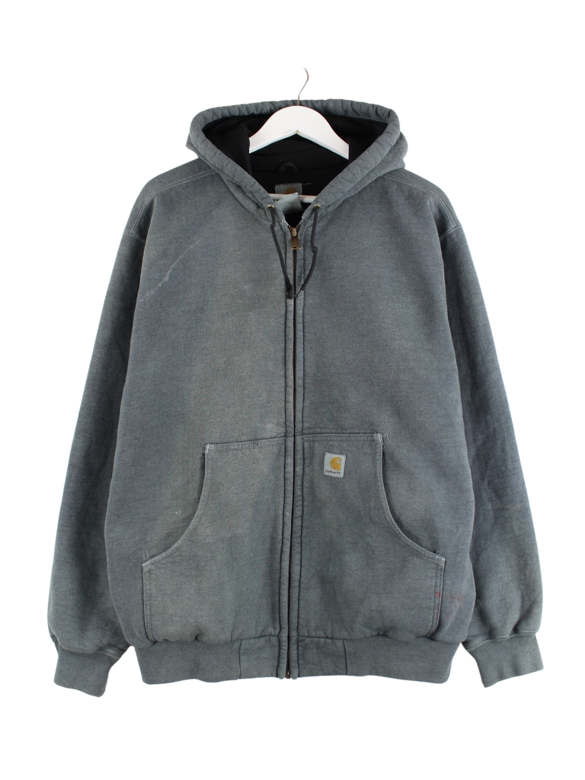 Grey hoodie with zip from Carhartt in size XL. It is made from a cotton blend. We would describe the condition as 'fine' (see pictures).