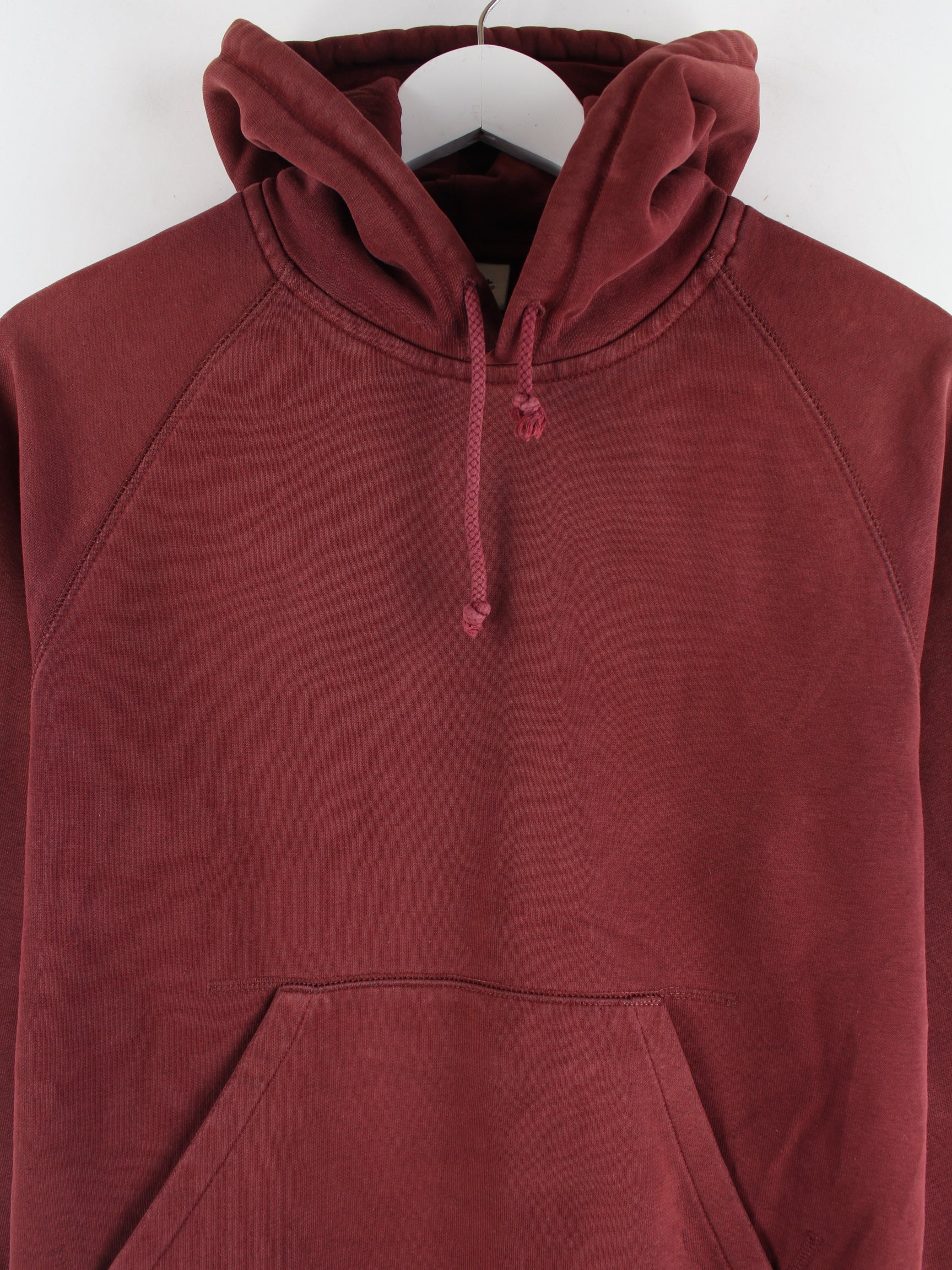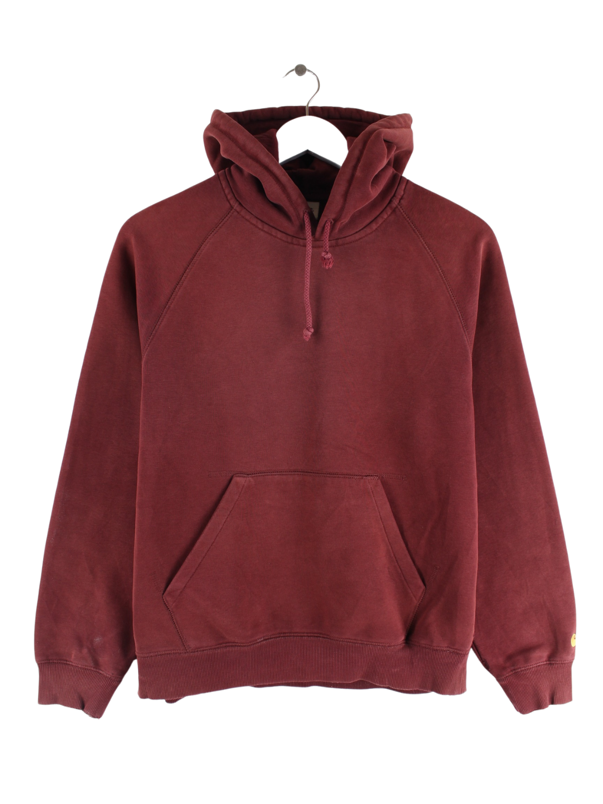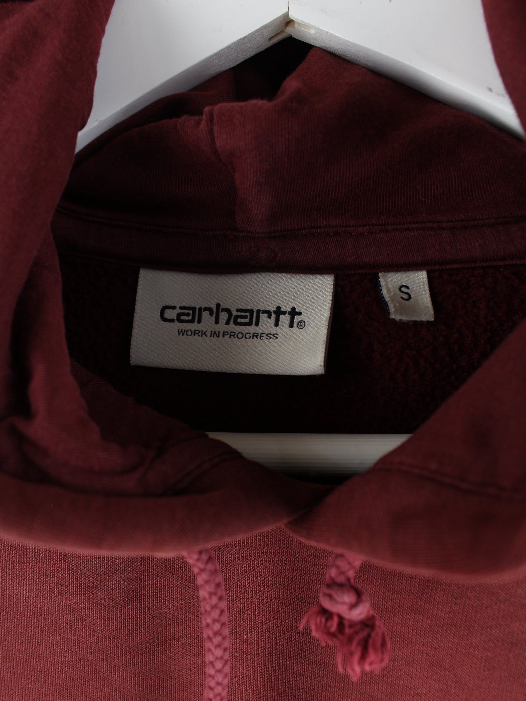 Roter Hoodie von Carhartt in Größe S. Er ist aus einer Baumwollmischung und in gutem Zustand bei uns zu bekommen.