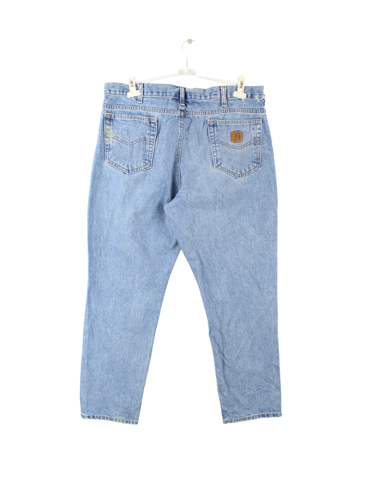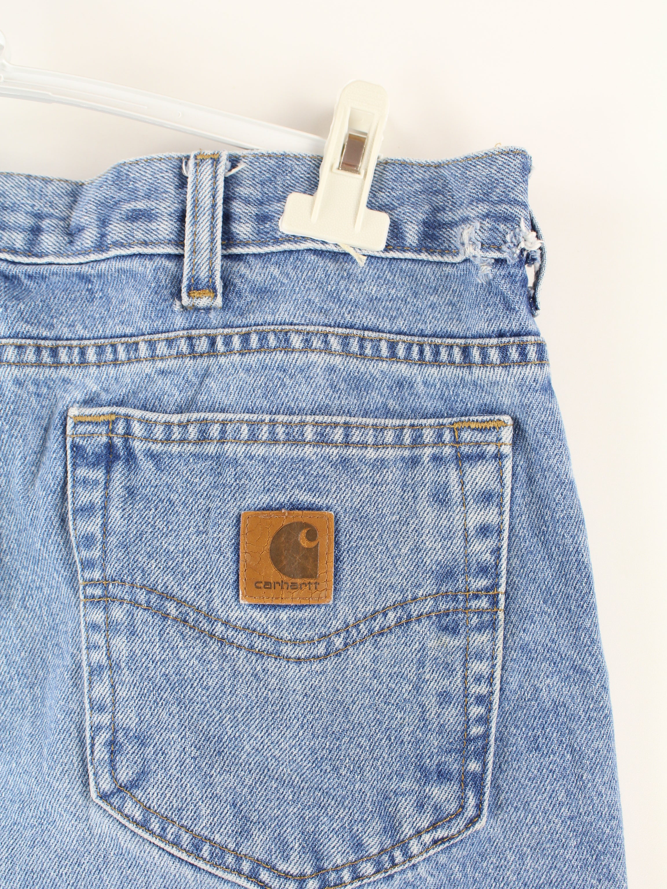 Blue jeans from the Carhartt brand.