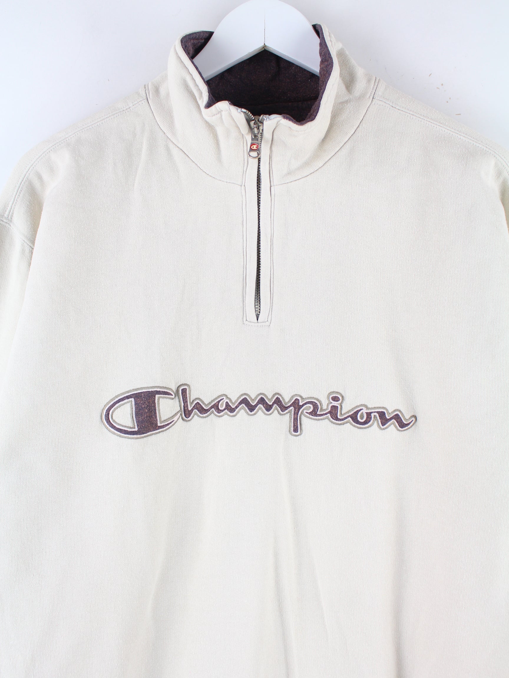 Champion 00s Embroidered Half Zip Sweater Beige L