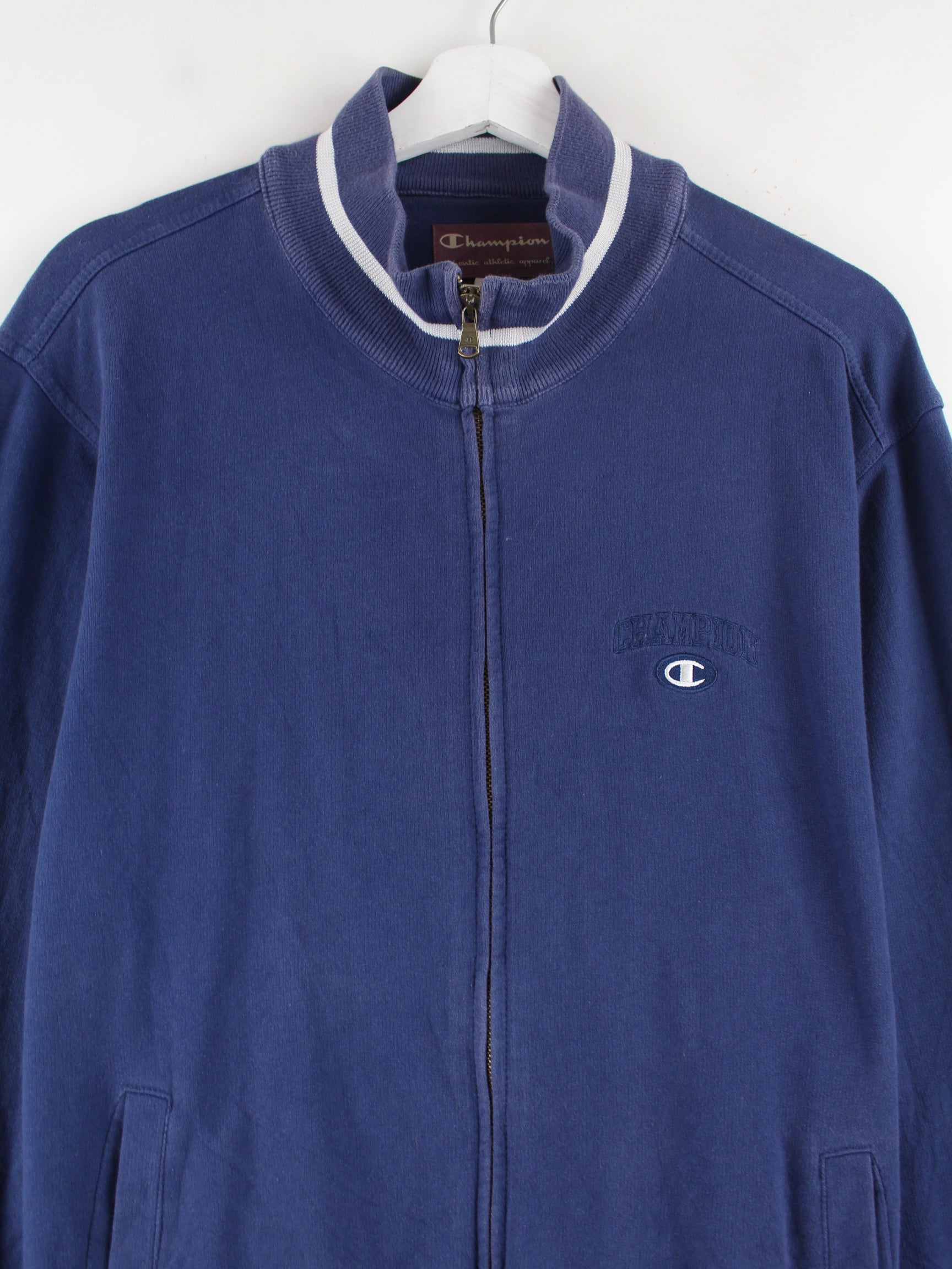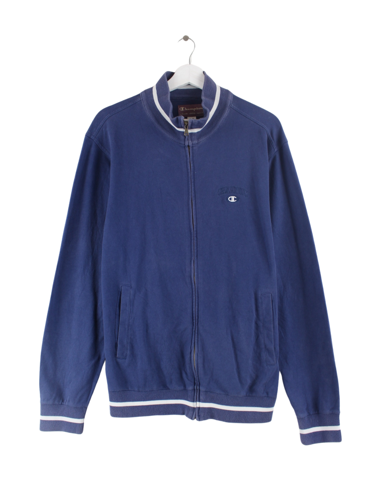 Champion brand sweatshirt with embroidery in size M. It is made from a cotton blend and is available in blue.