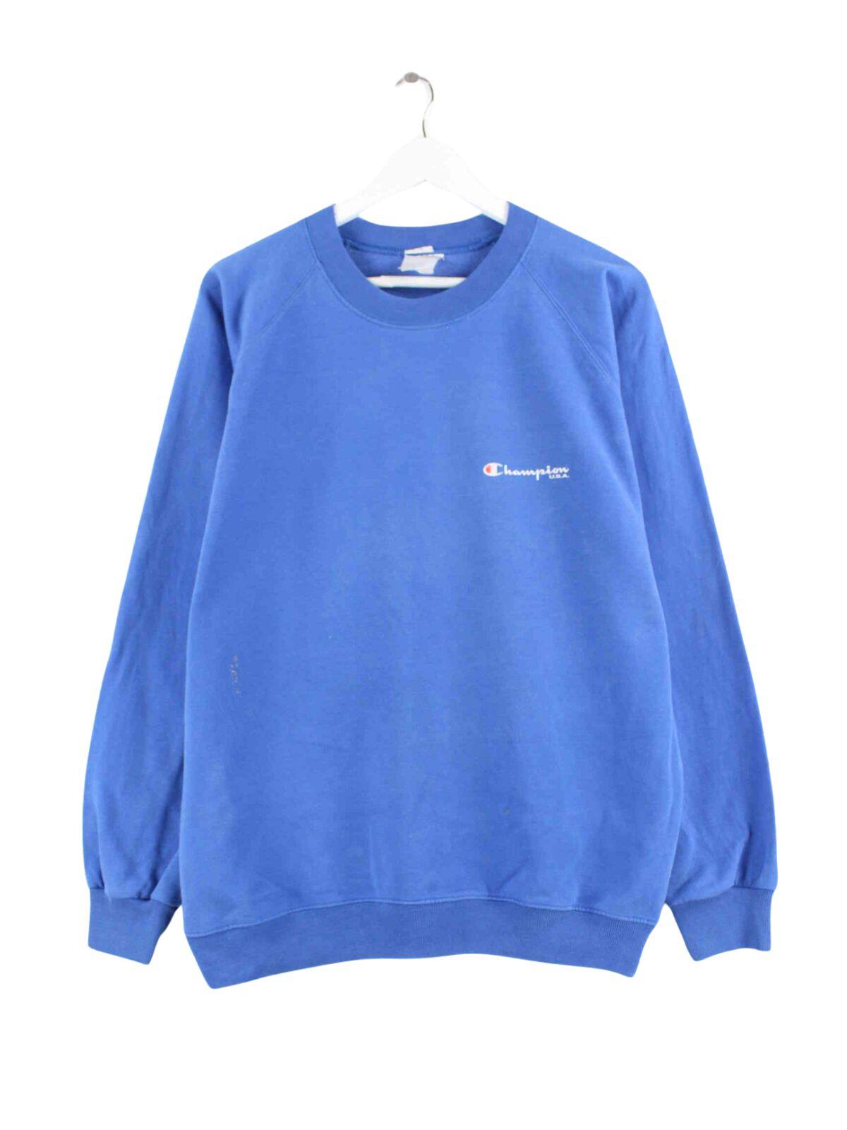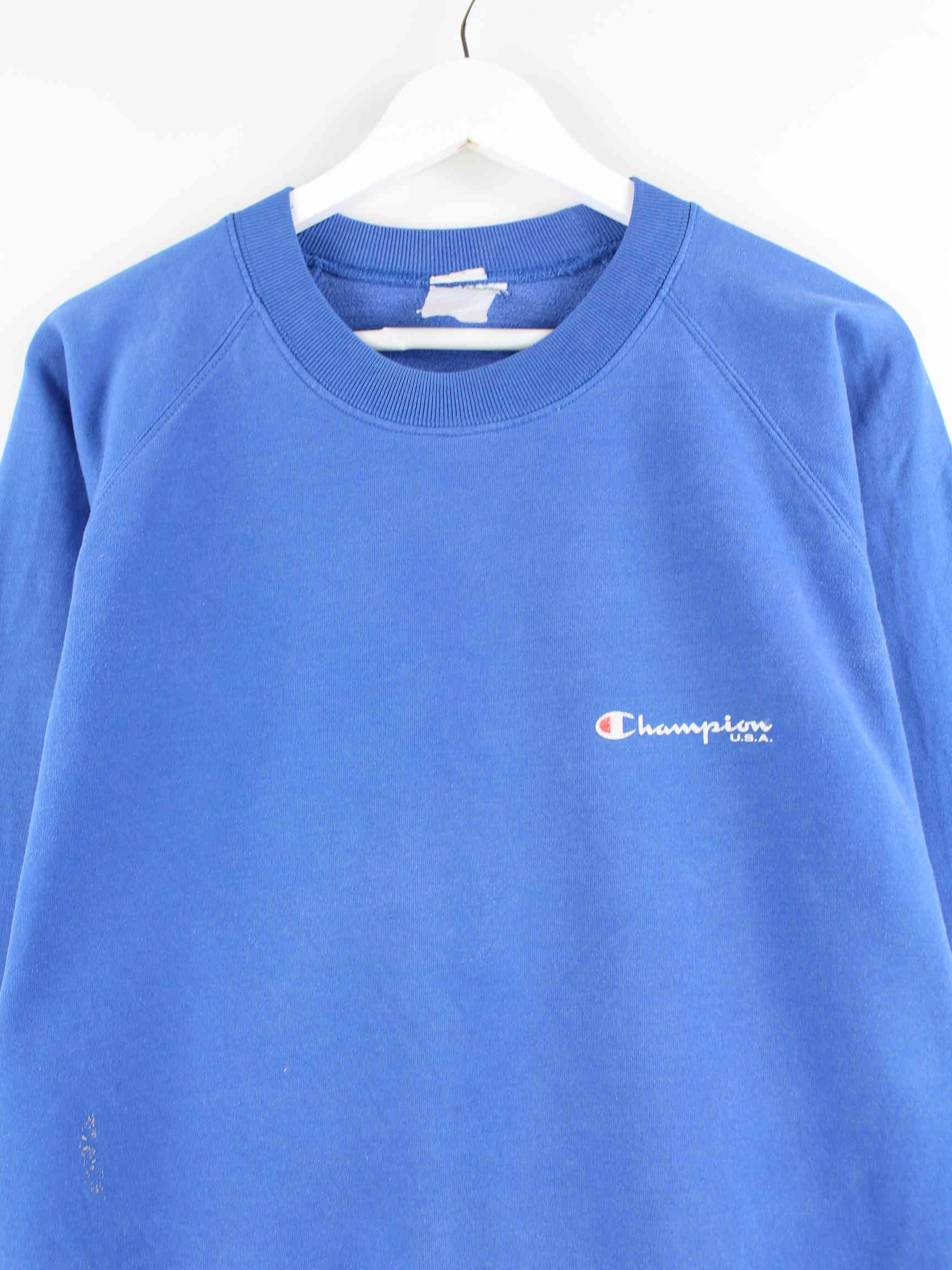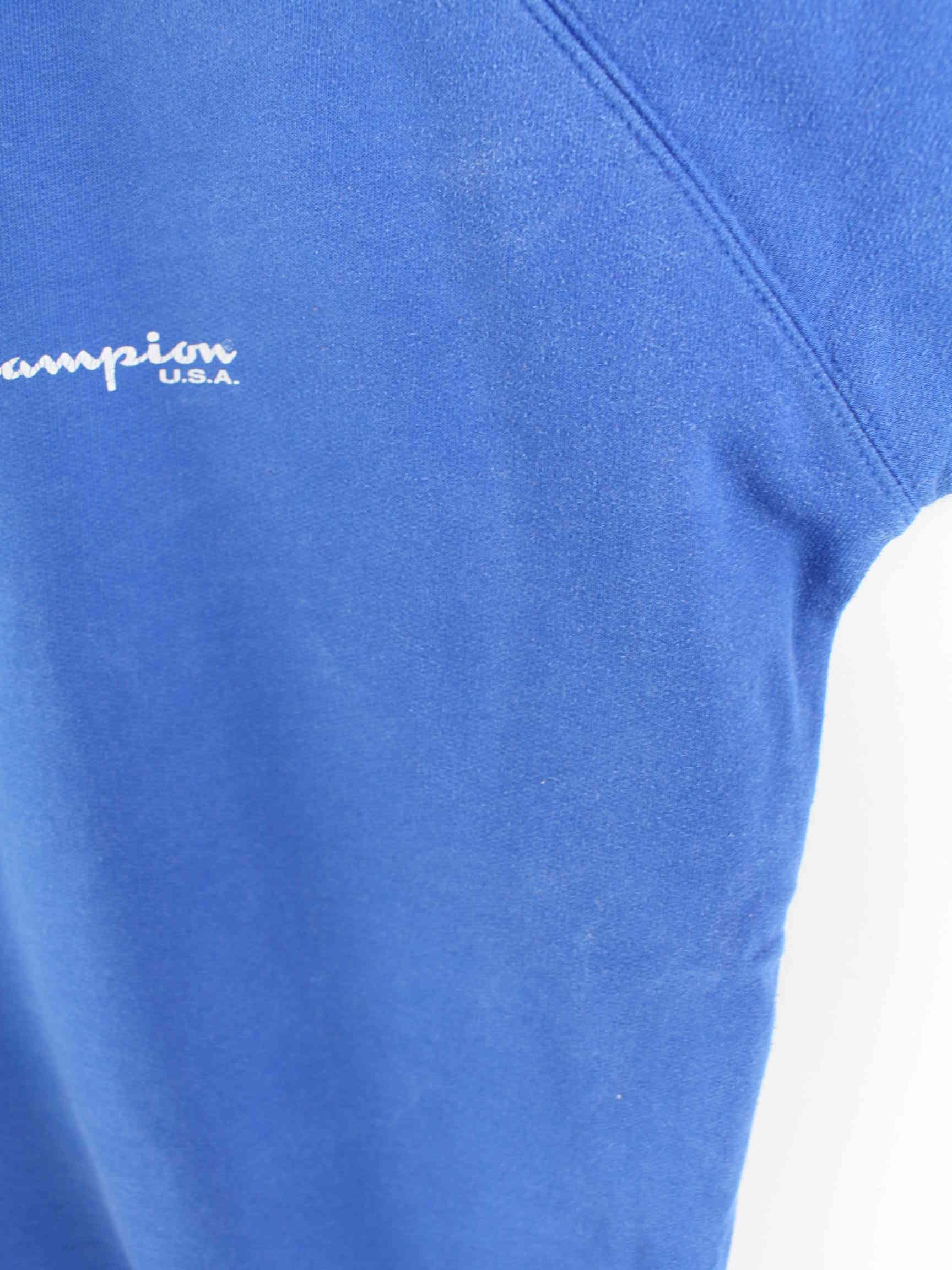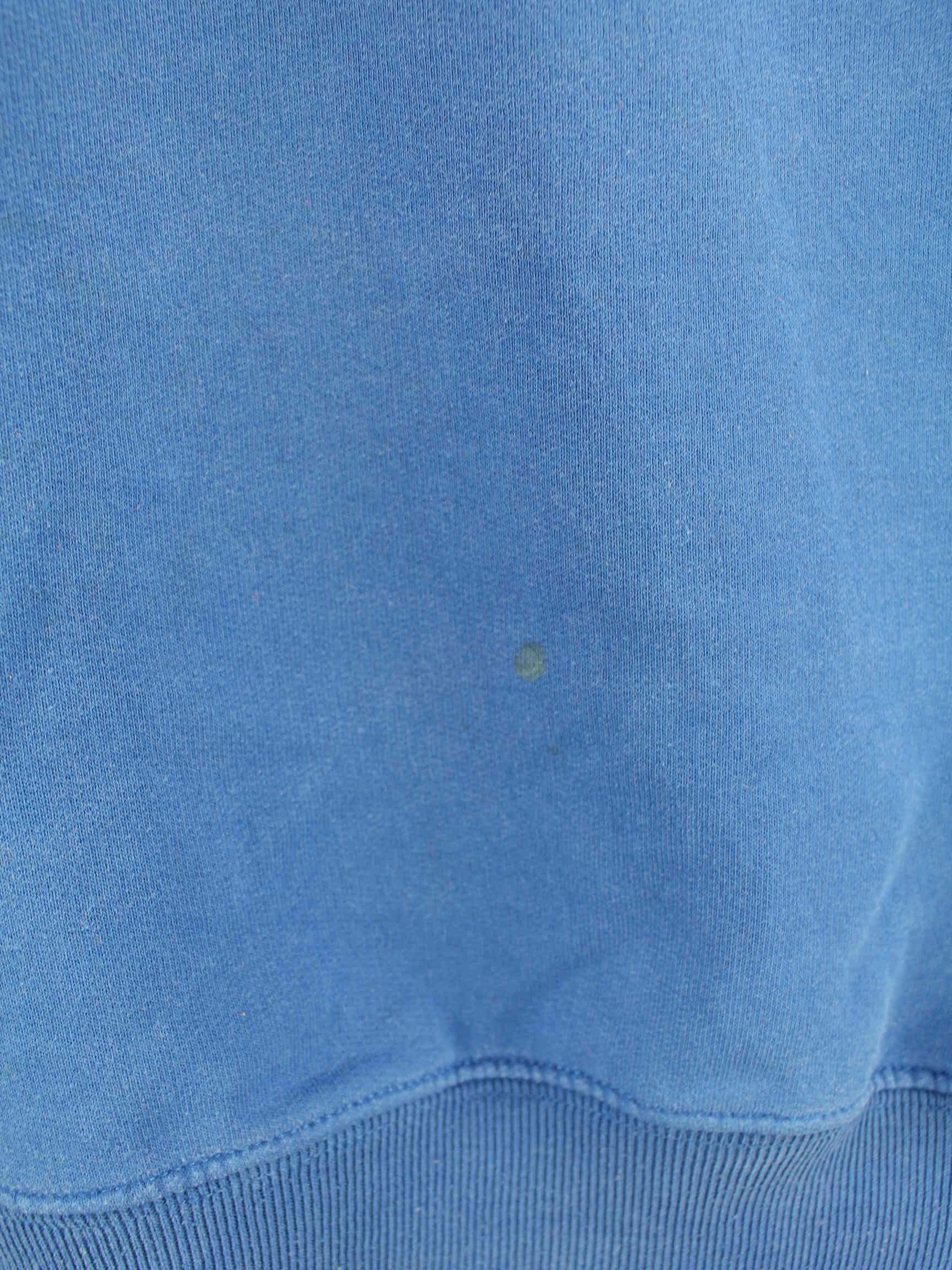 Sweater from the brand Champion in size XL from the 90s. It is made from a cotton blend and is available in blue. With a great vintage print.