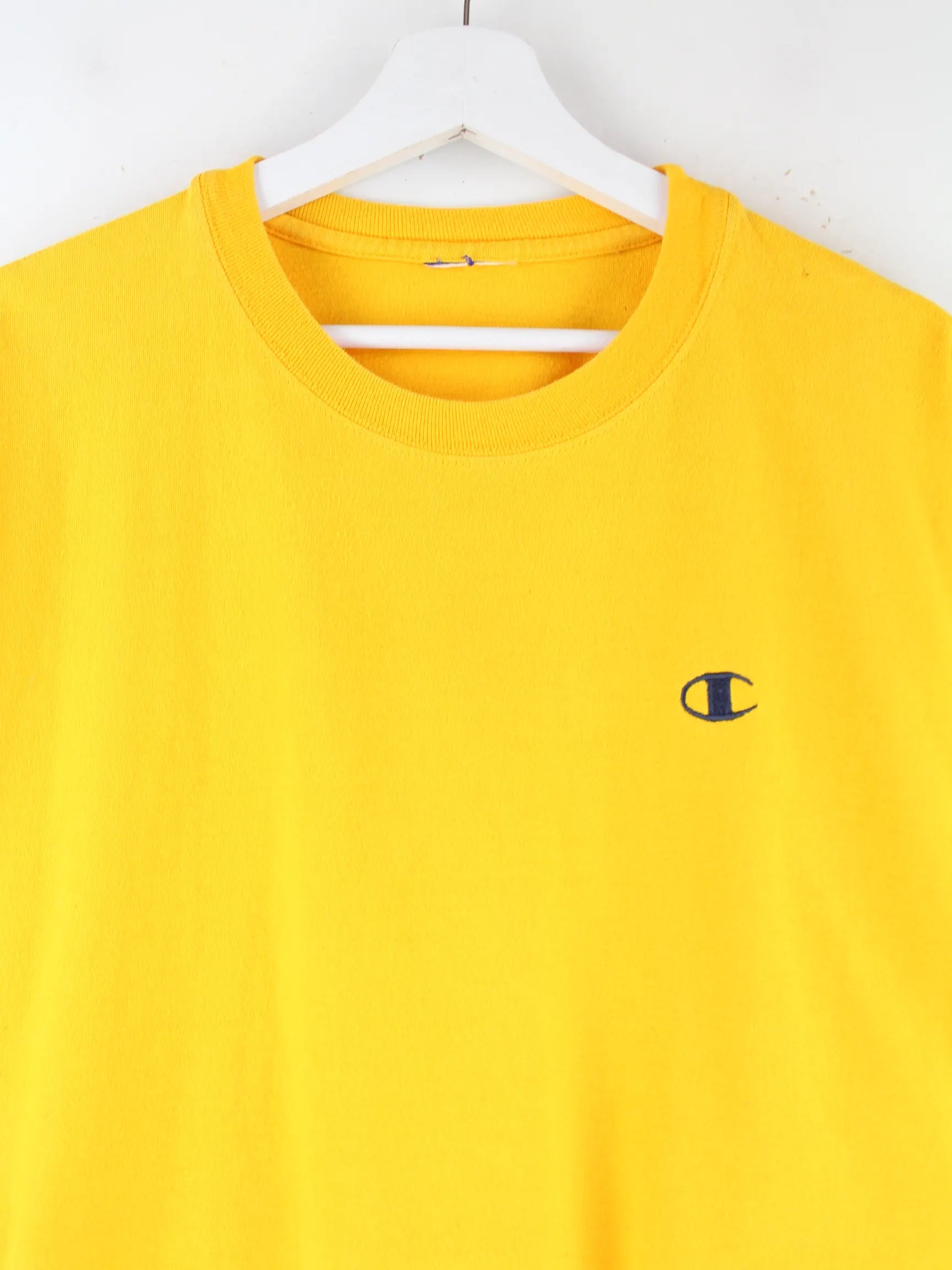 Gelbes T-Shirt der Brand Champion in Größe XXL. Es ist aus Baumwolle gemacht. Den Zustand würden wir als 'In Ordnung' bezeichnen (vergl. Bilder).