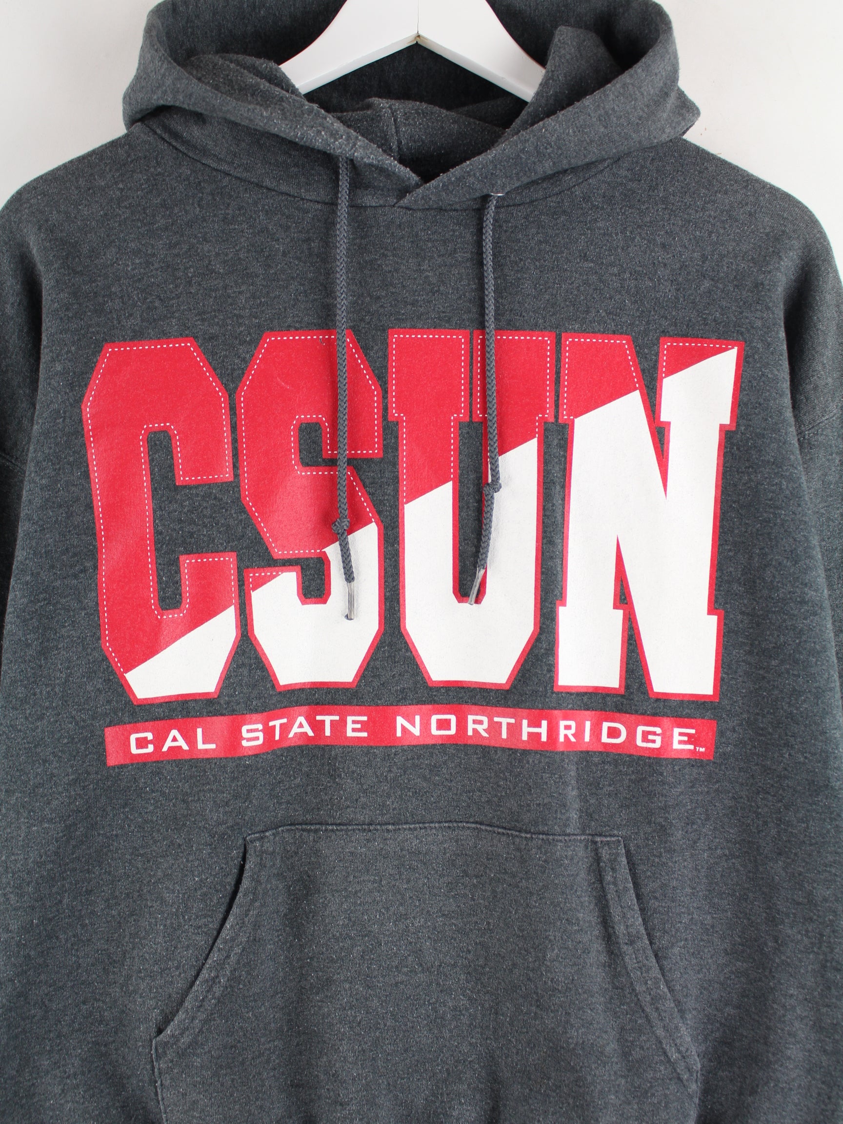 Grauer Hoodie der Marke Champion in Größe M. Er ist aus einer Baumwollmischung gefertigt und in gutem Zustand zu bekommen. Mit seltenem University Print.
