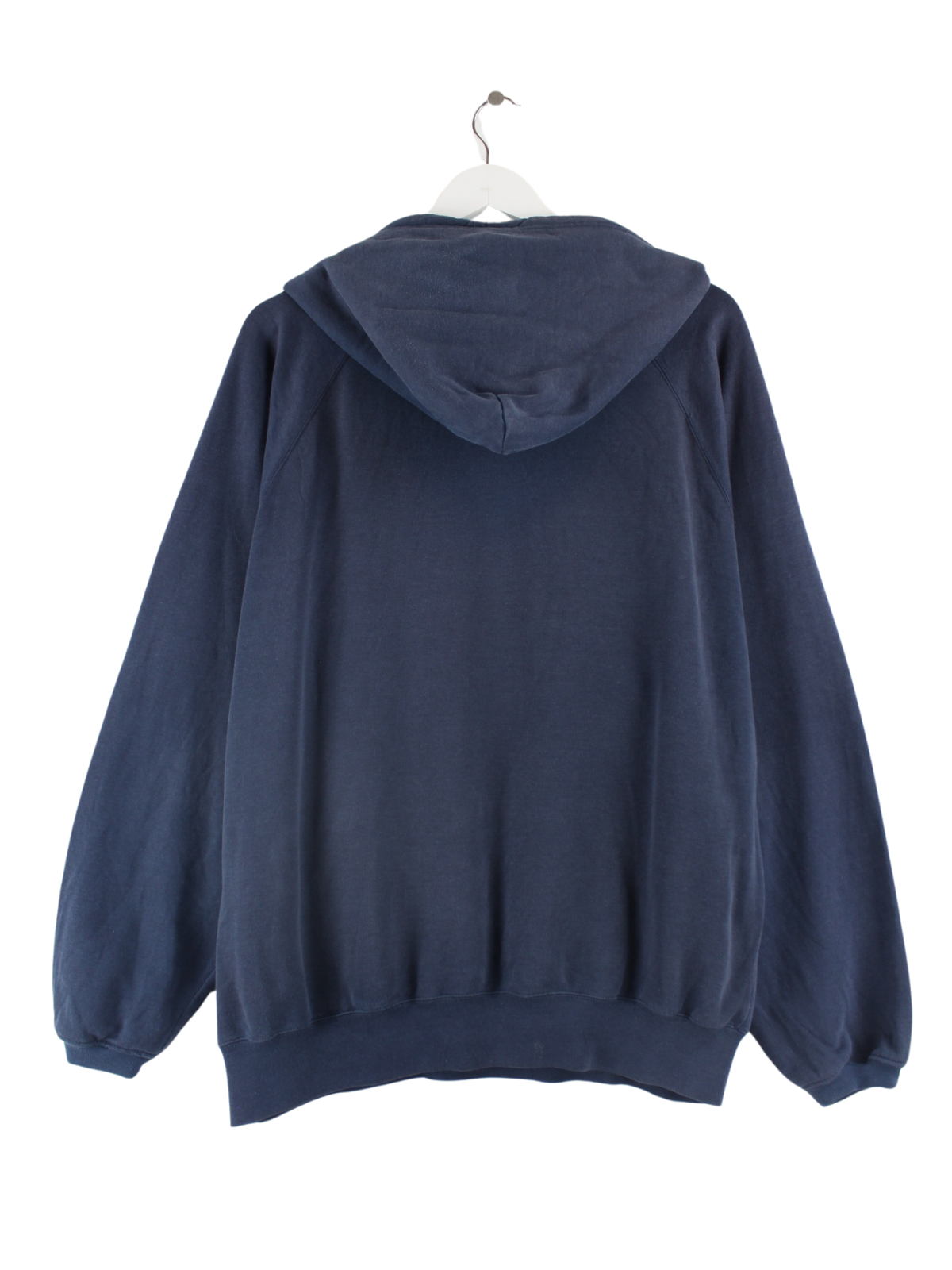 Blue hoodie with embroidered motifs from the Champion label in size L. It is made from a cotton blend and is in very good condition.