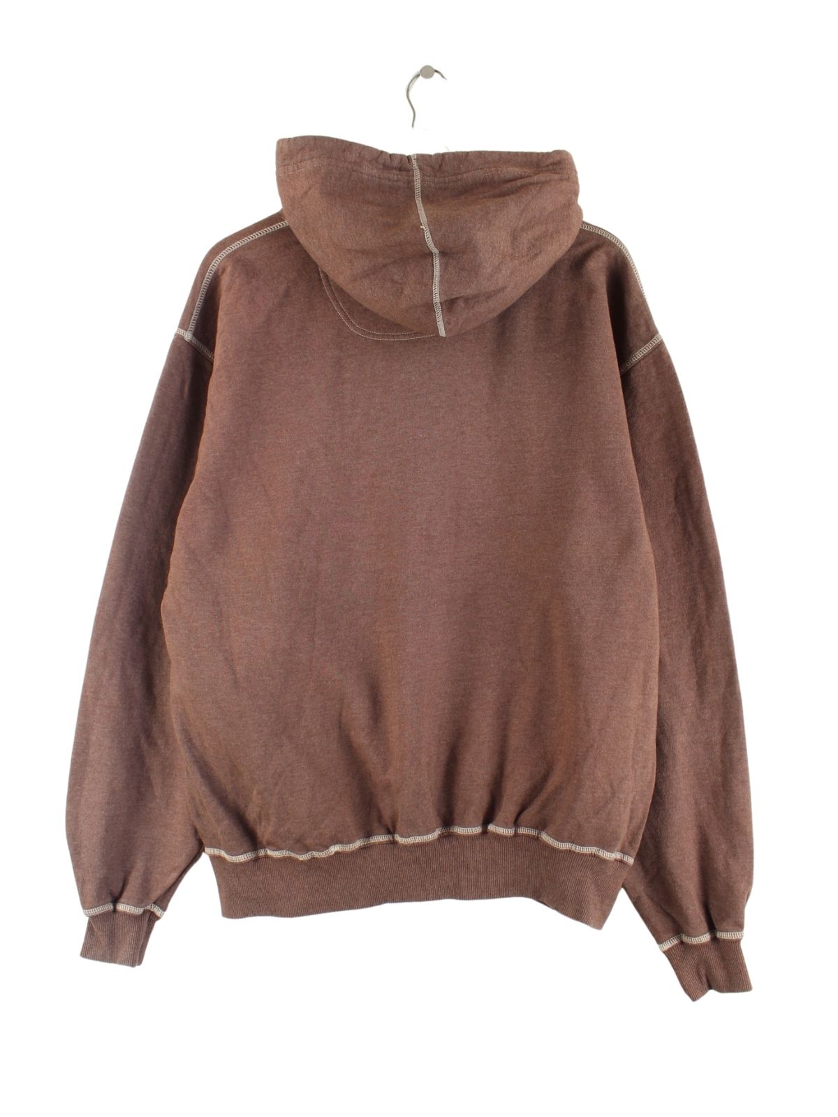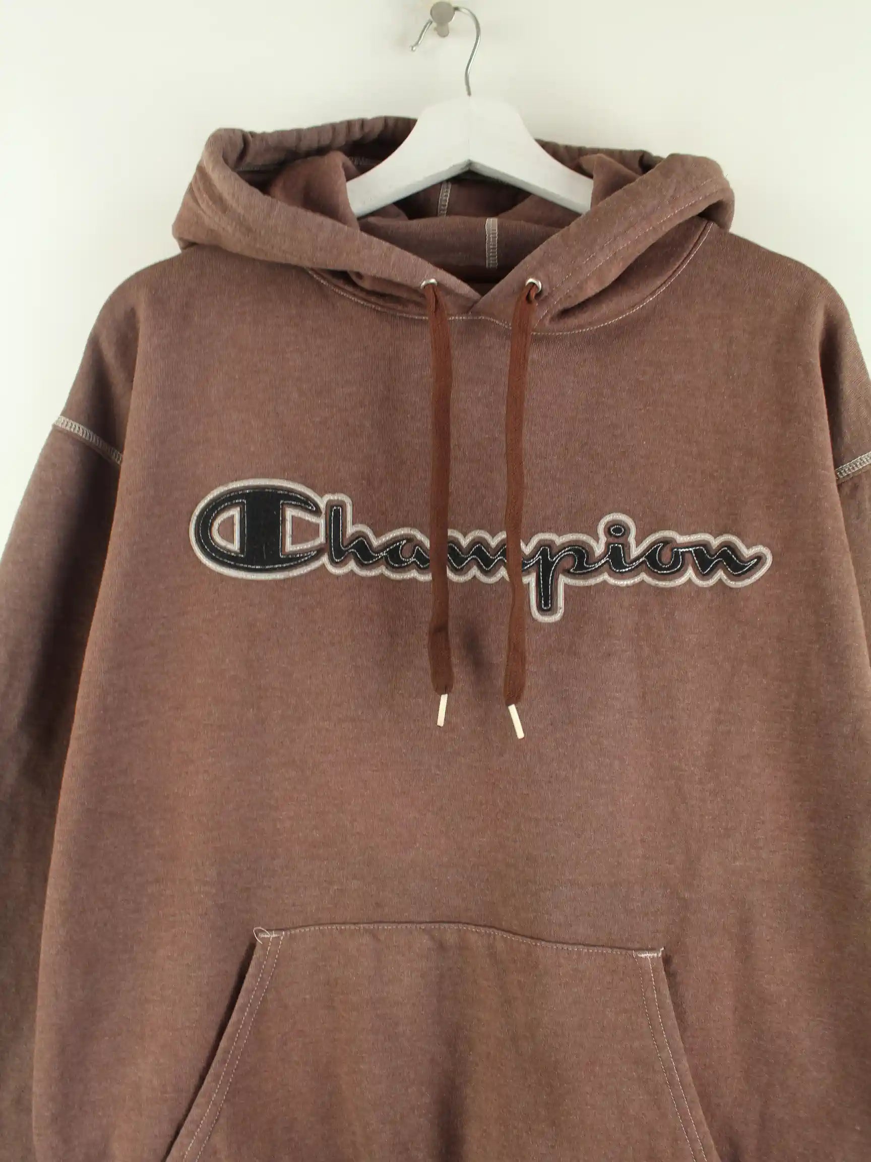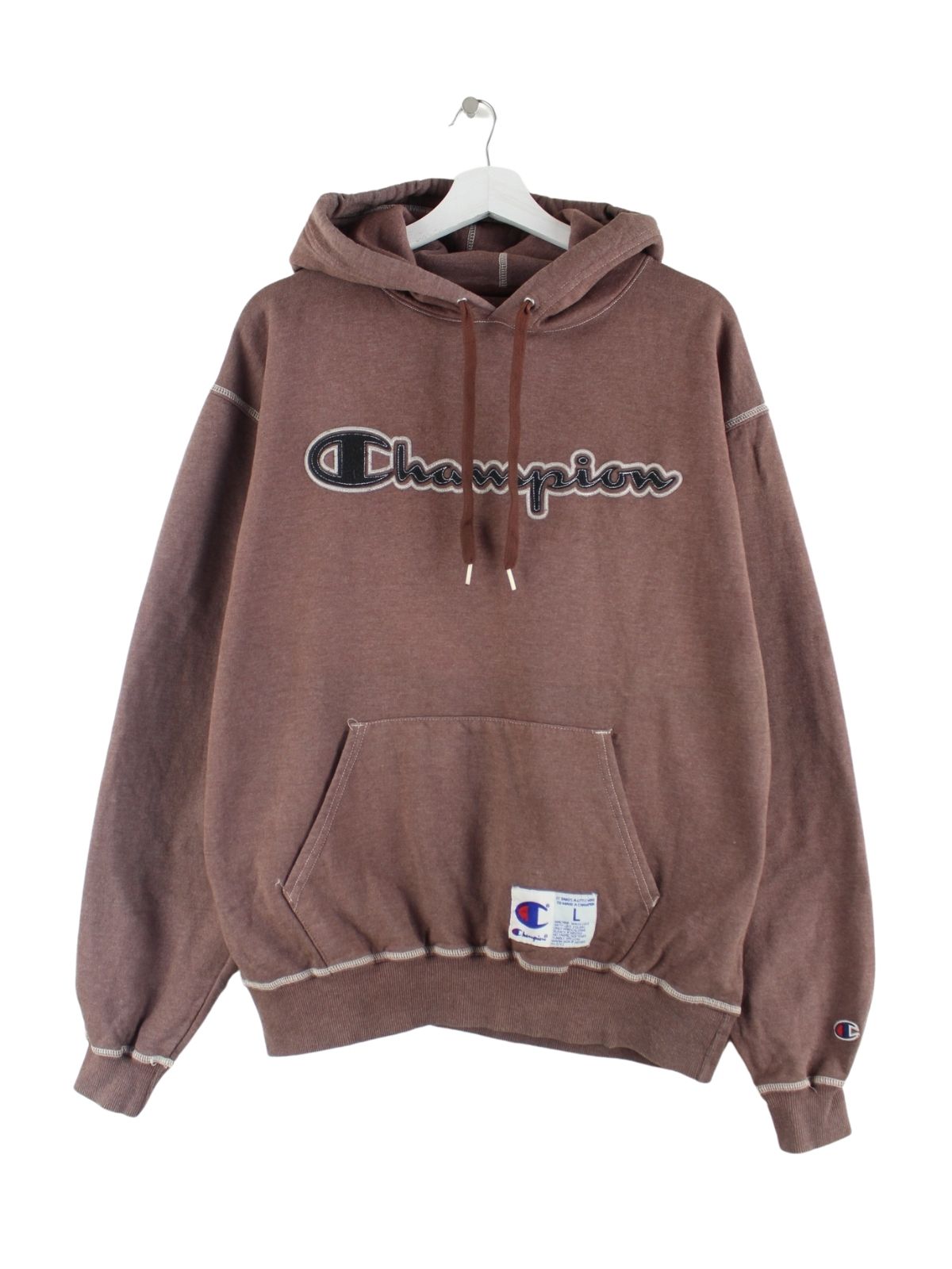 Brauner Hoodie mit gesticktem Logo aus dem Hause Champion in Größe L. Er ist aus einer Baumwollmischung angefertigt und in sehr gutem Zustand zu haben.