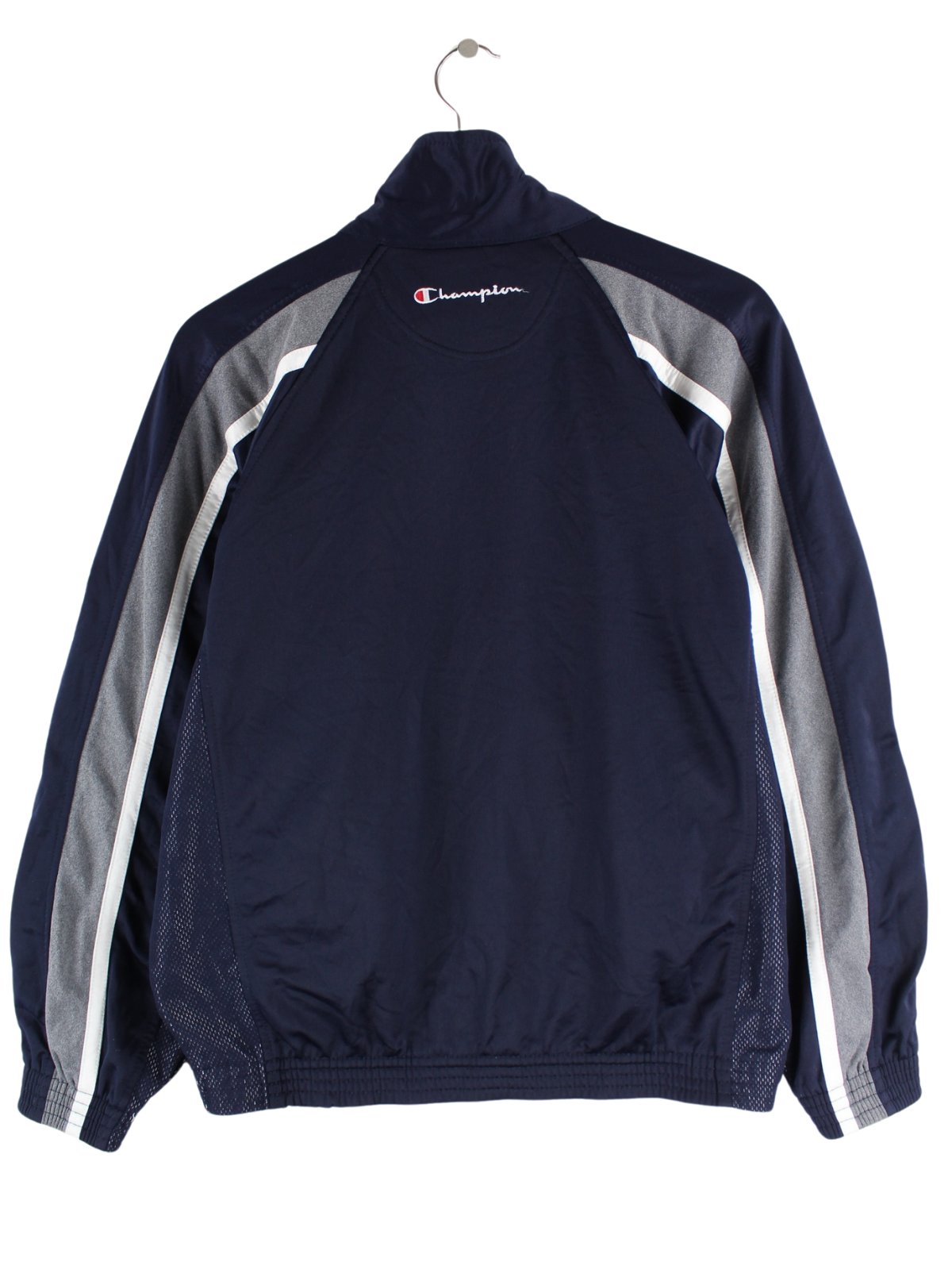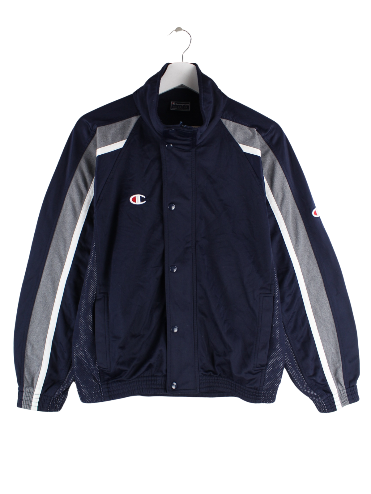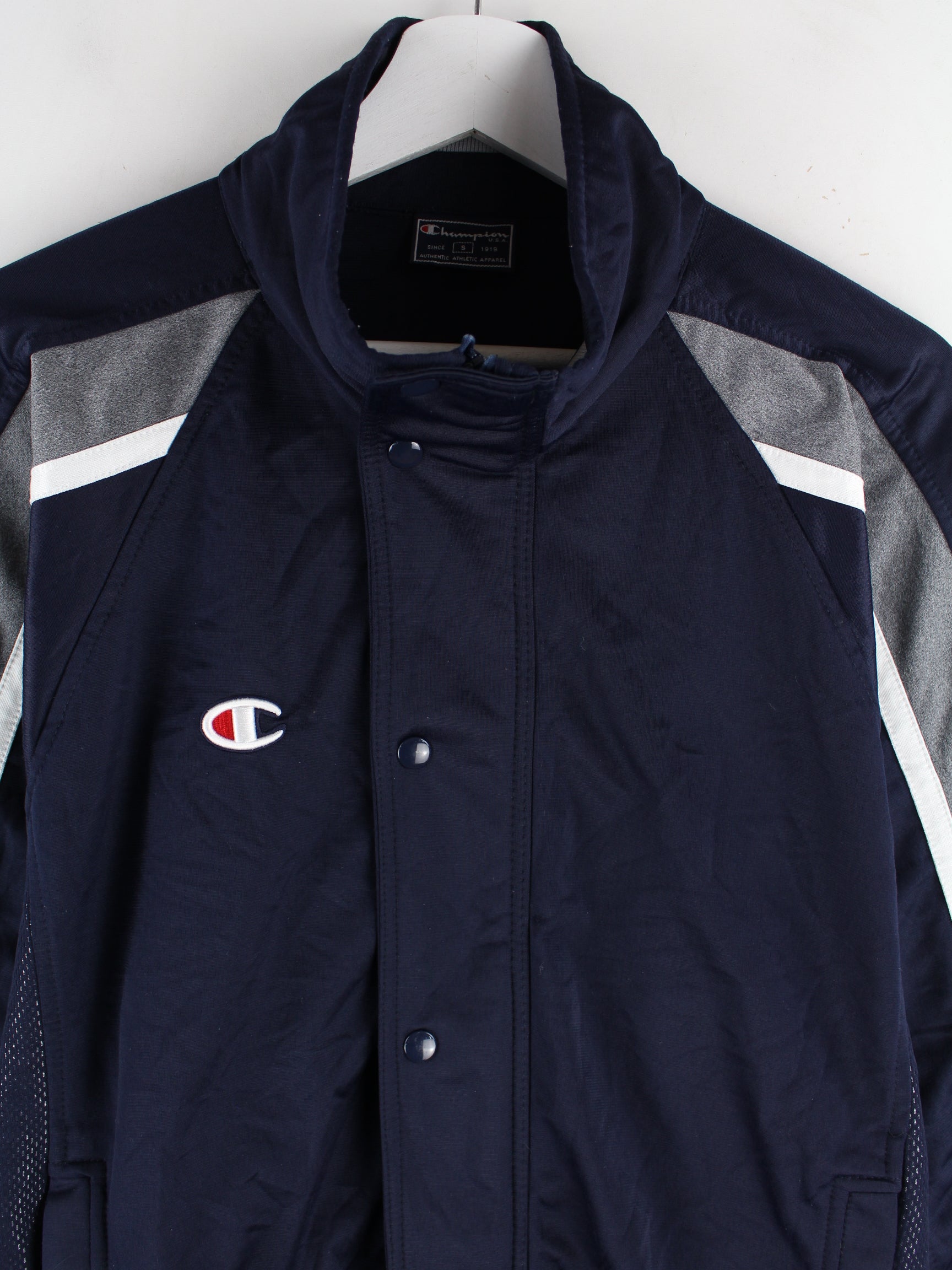 Training jacket from the brand Champion with embroidery in size S. It is made of synthetic material and is available in blue.