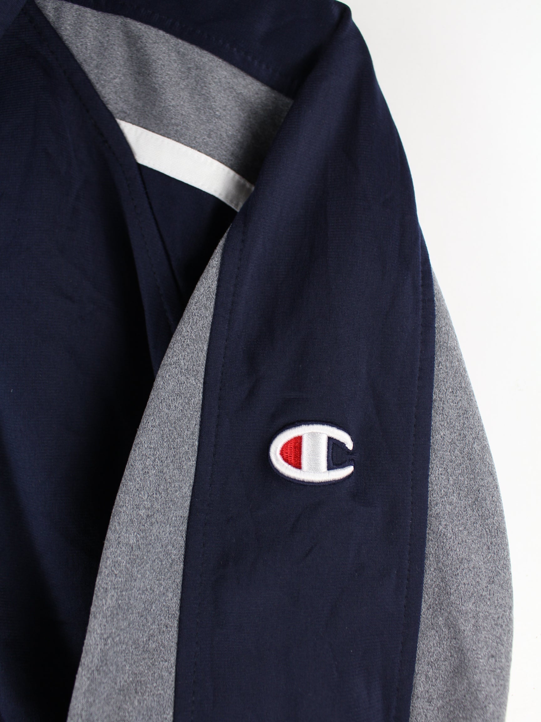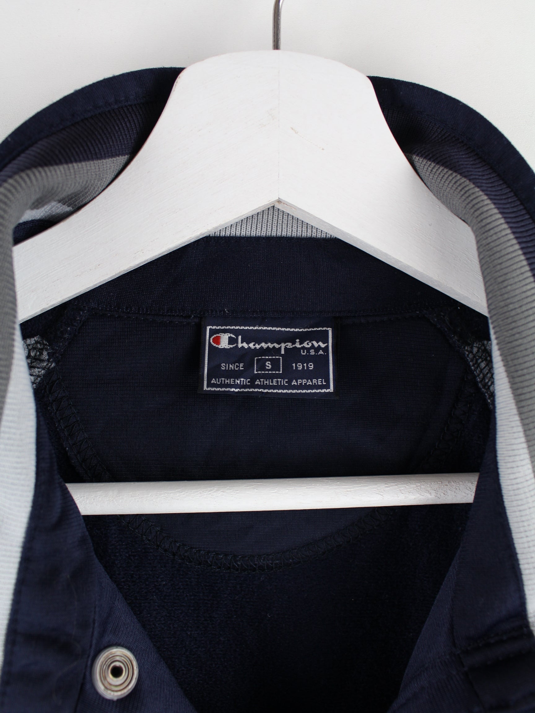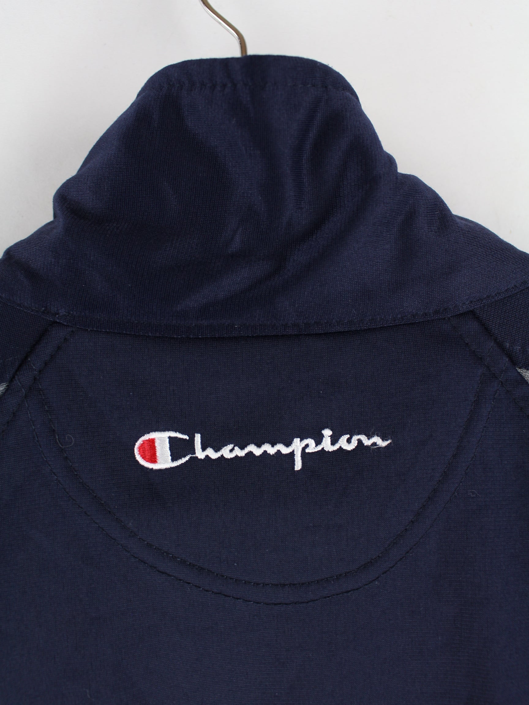 Training jacket from the brand Champion with embroidery in size S. It is made of synthetic material and is available in blue.