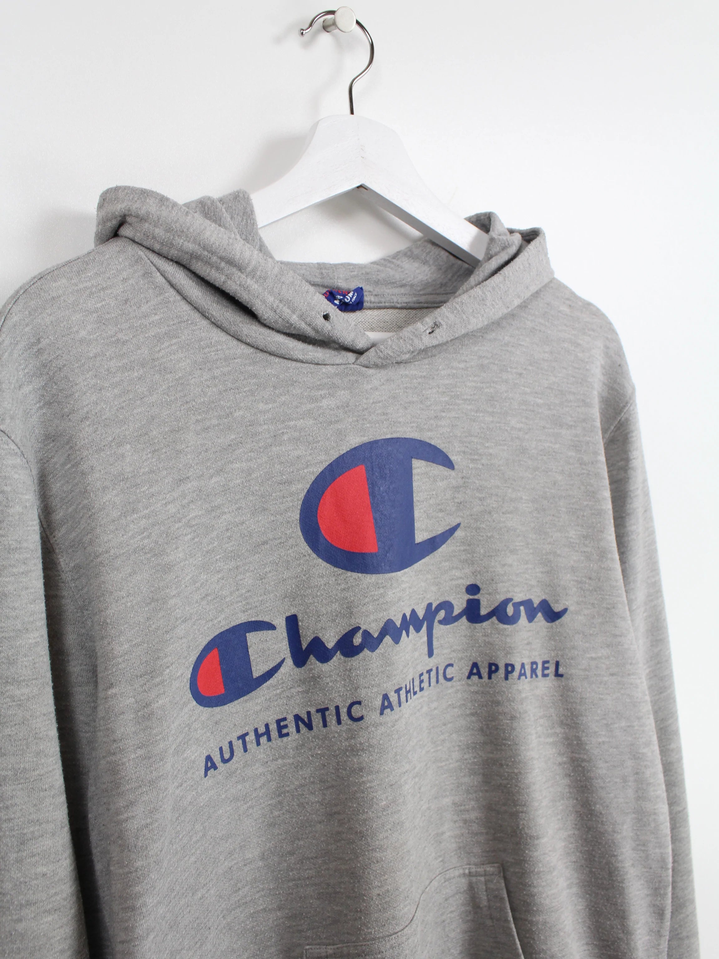 Sweat à capuche champion stylé avec un grand imprimé sur le devant.