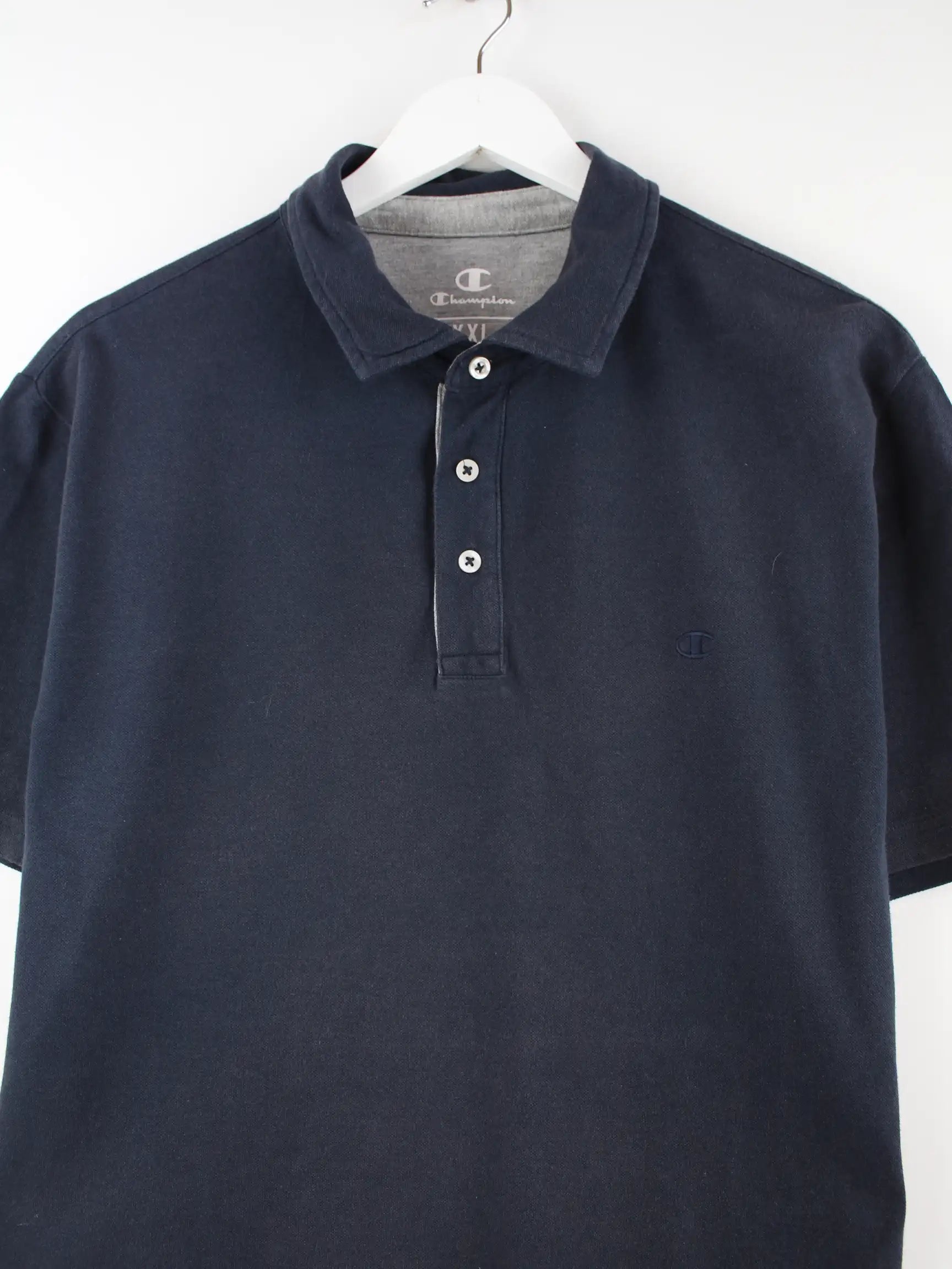 Blaues Poloshirt vom Brand Champion in Größe XXL. Es ist aus Baumwolle hergestellt und in sehr gutem Zustand in Stock.
