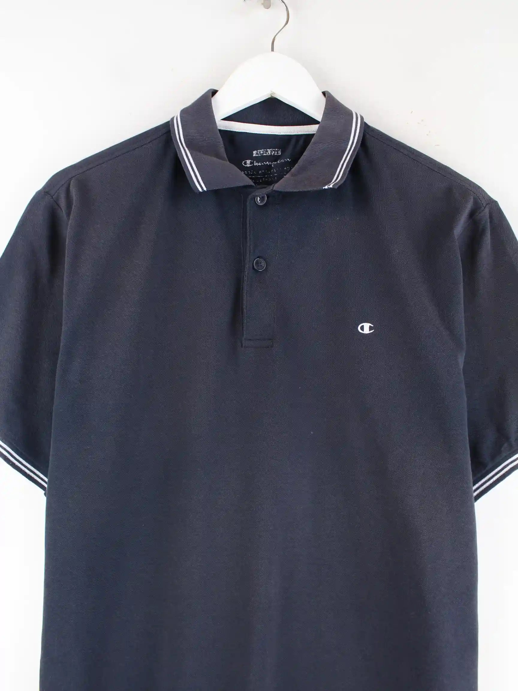 Poloshirt vom Label Champion in Größe XL. Es ist aus Baumwolle hergestellt und in Grau in Stock.