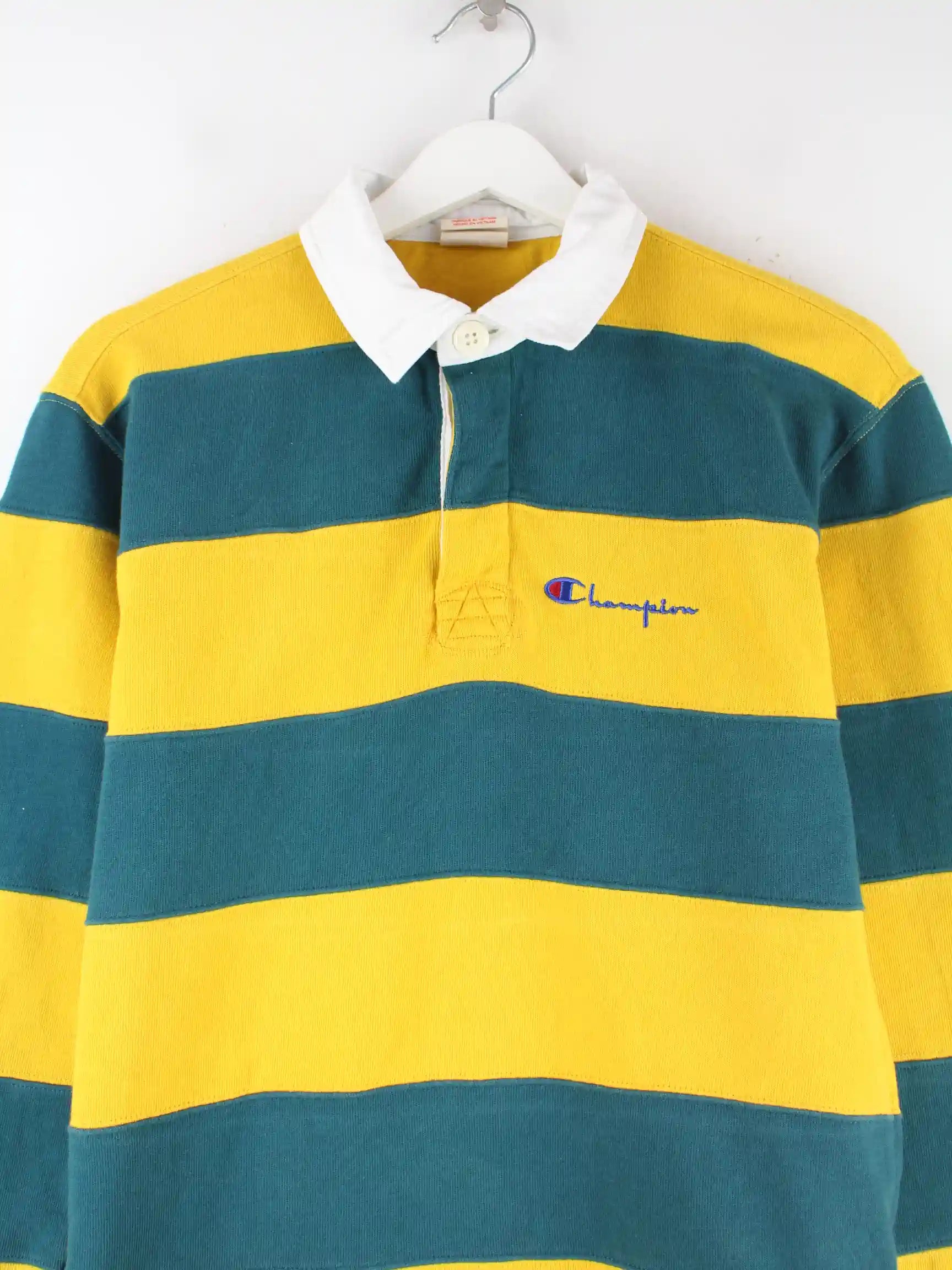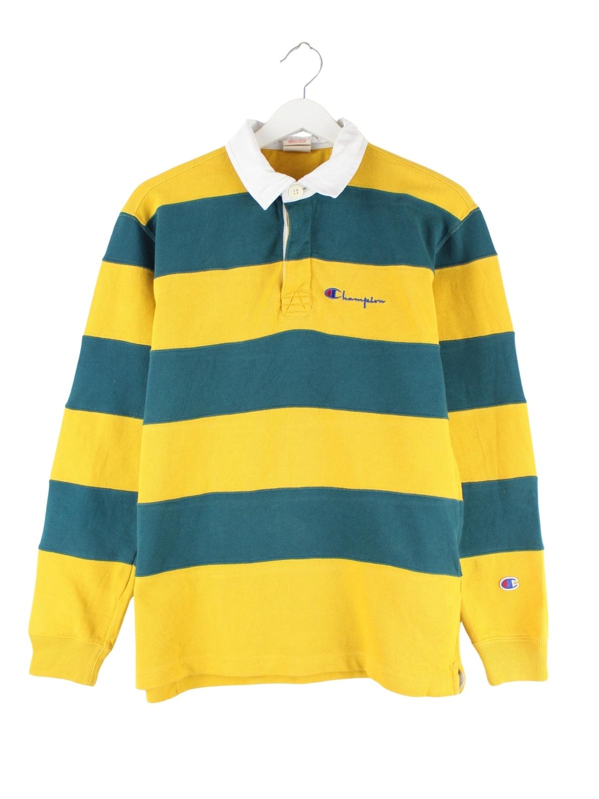Champion Striped Rugby Langarm Polo Grün / Gelb XS
