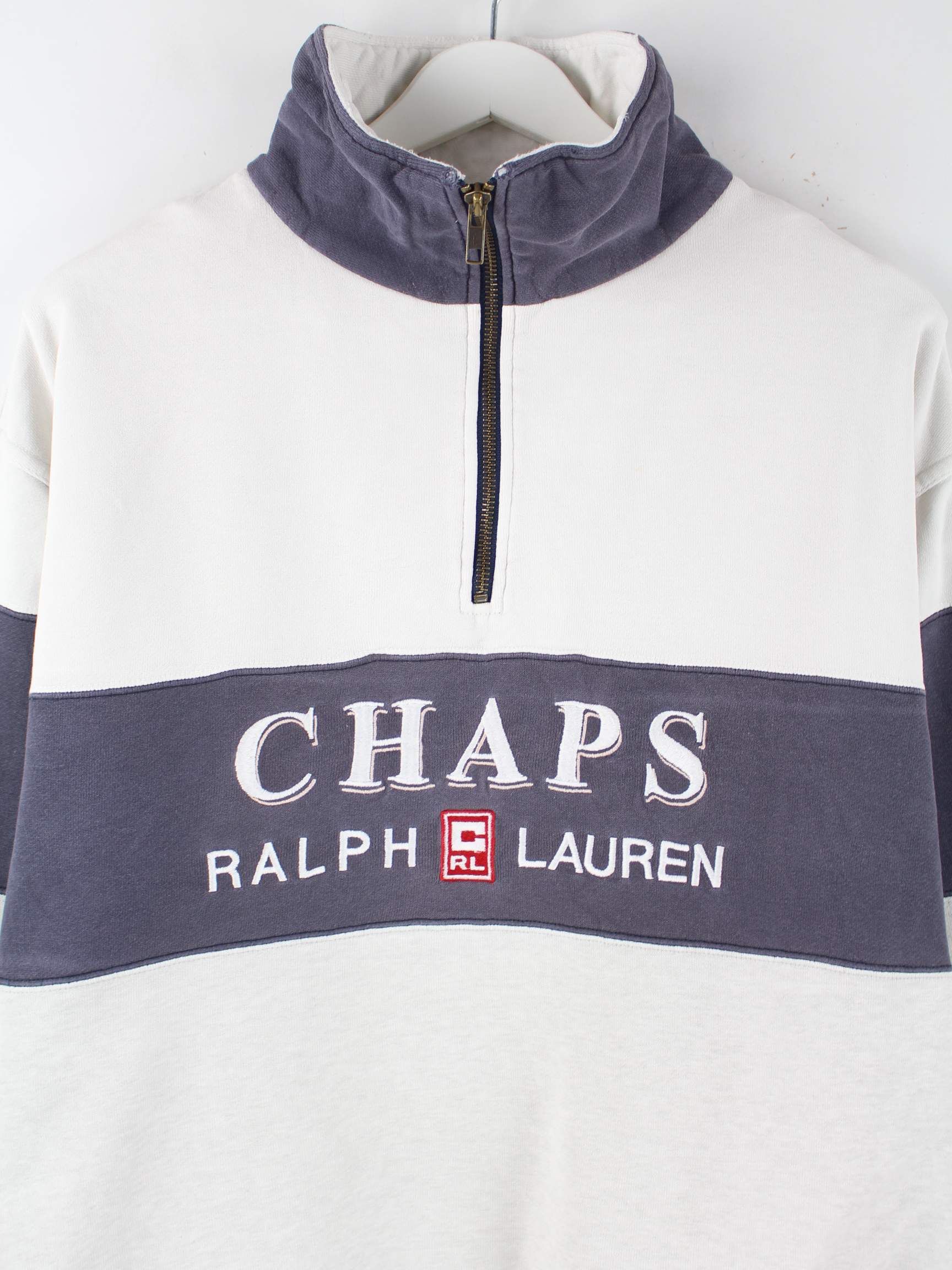 Chaps by Ralph Lauren 90s Vintage Embroidered Half Zip Sweater Grau M