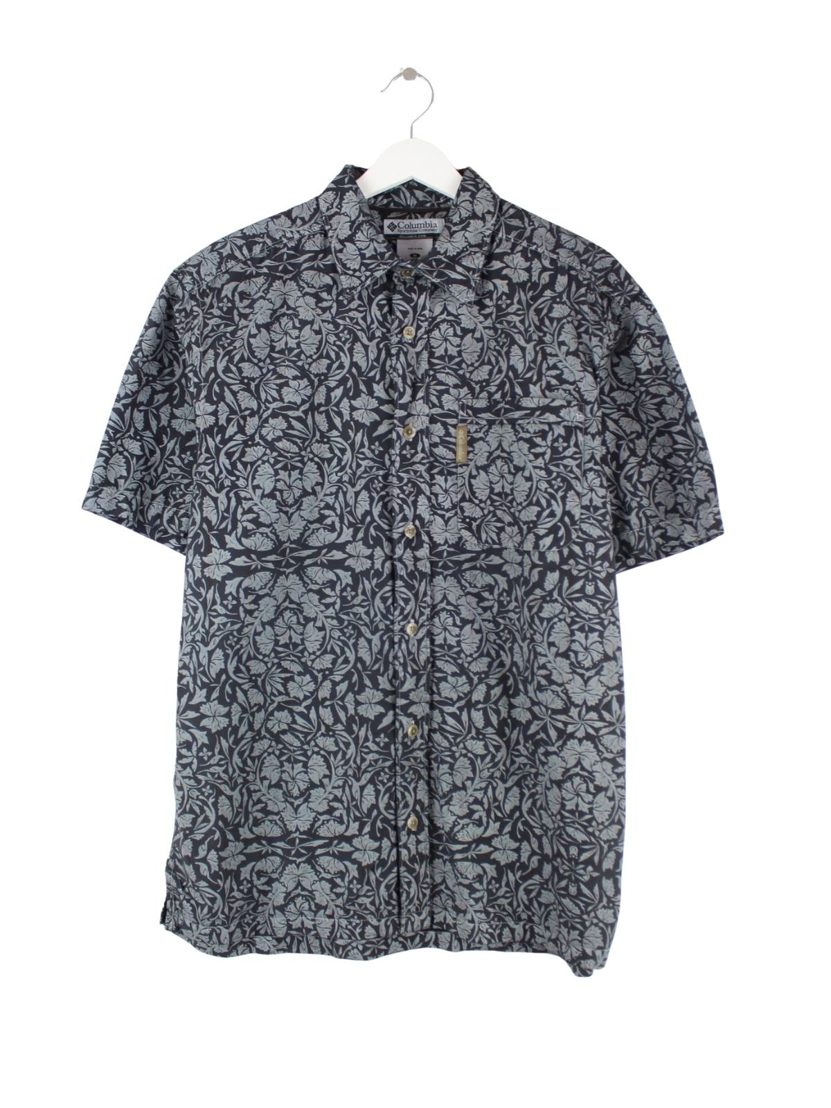 Columbia 00s Flower Pattern Kurzarm Hemd Schwarz M