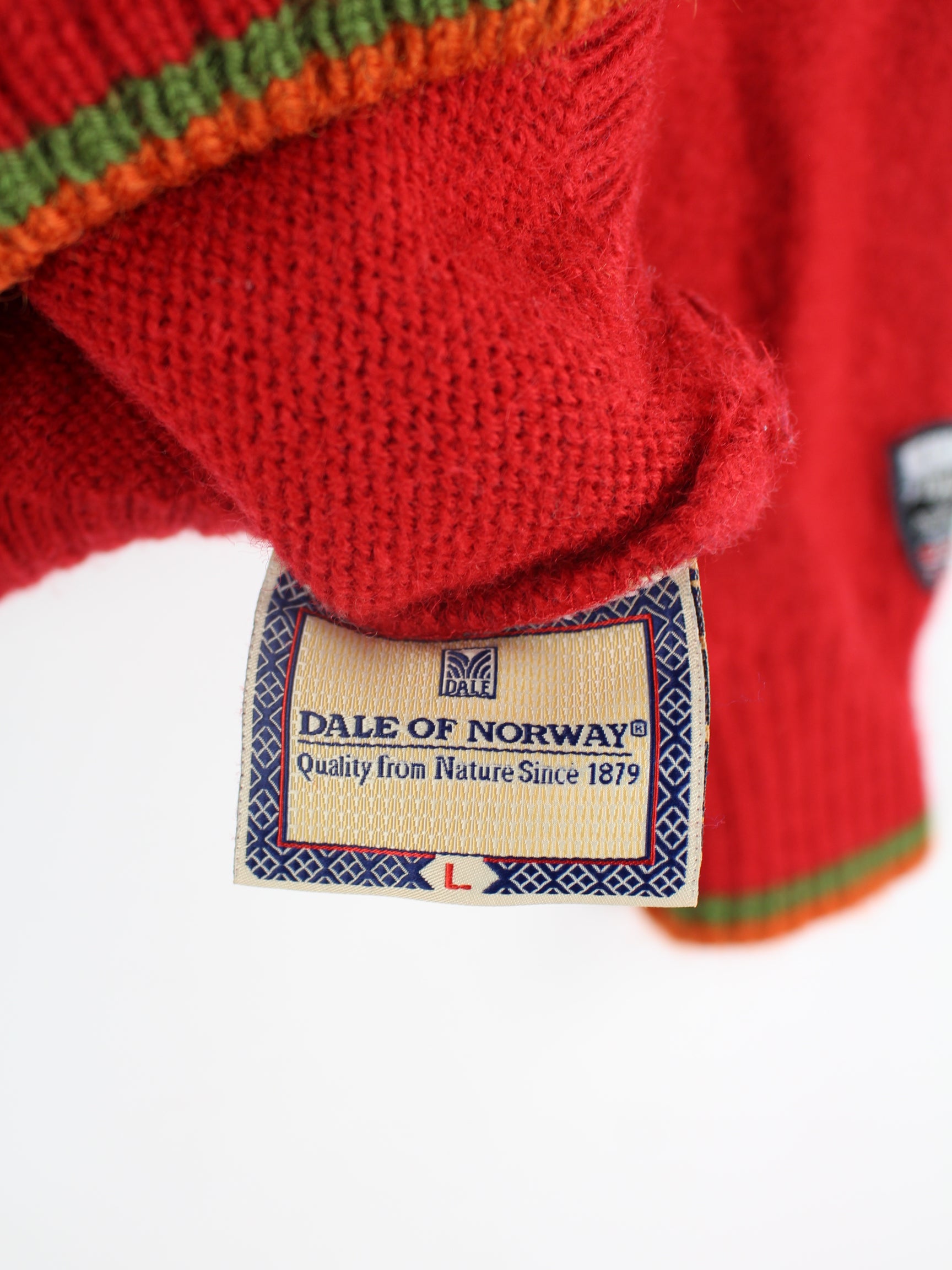 Roter Pullover mit halbem Reißverschluß vom Label Dale of Norway in Größe M. Er ist aus Baumwolle gefertigt und in sehr gutem Zustand in Stock.