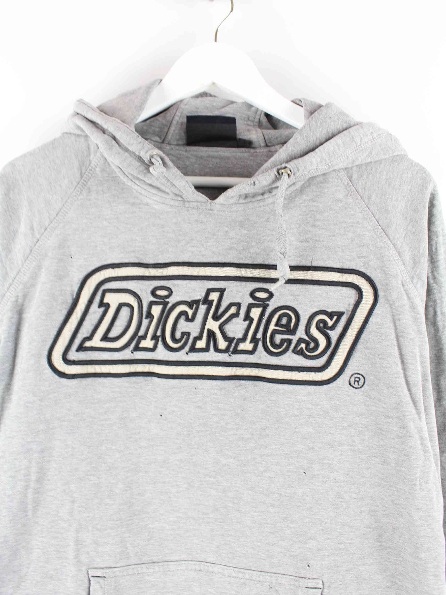 Hoodie from the Dickies label with an embroidered logo in size XL from the 90s. It is made from a cotton blend and is available in gray.