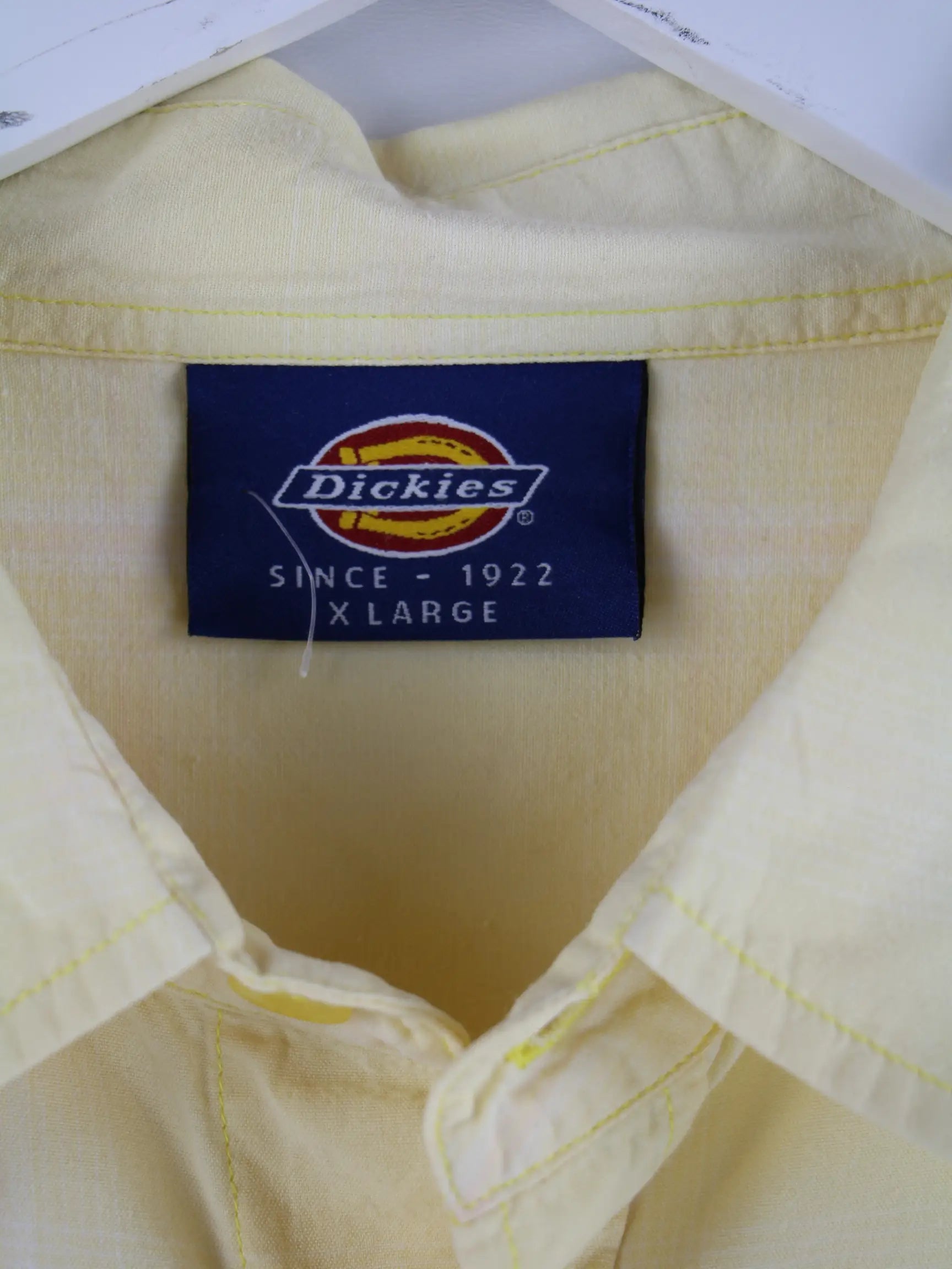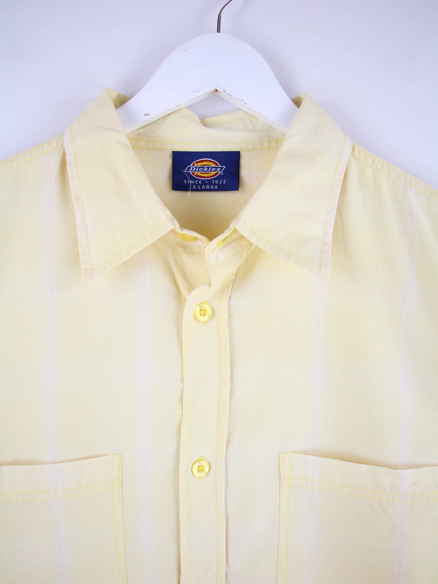 Gelbes Freizeit Hemd des Labels Dickies aus den 90'ern in Größe XL. Es ist aus Baumwolle gefertigt und in sehr gutem Zustand in Stock.