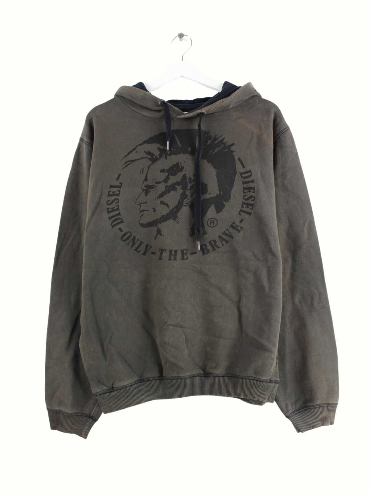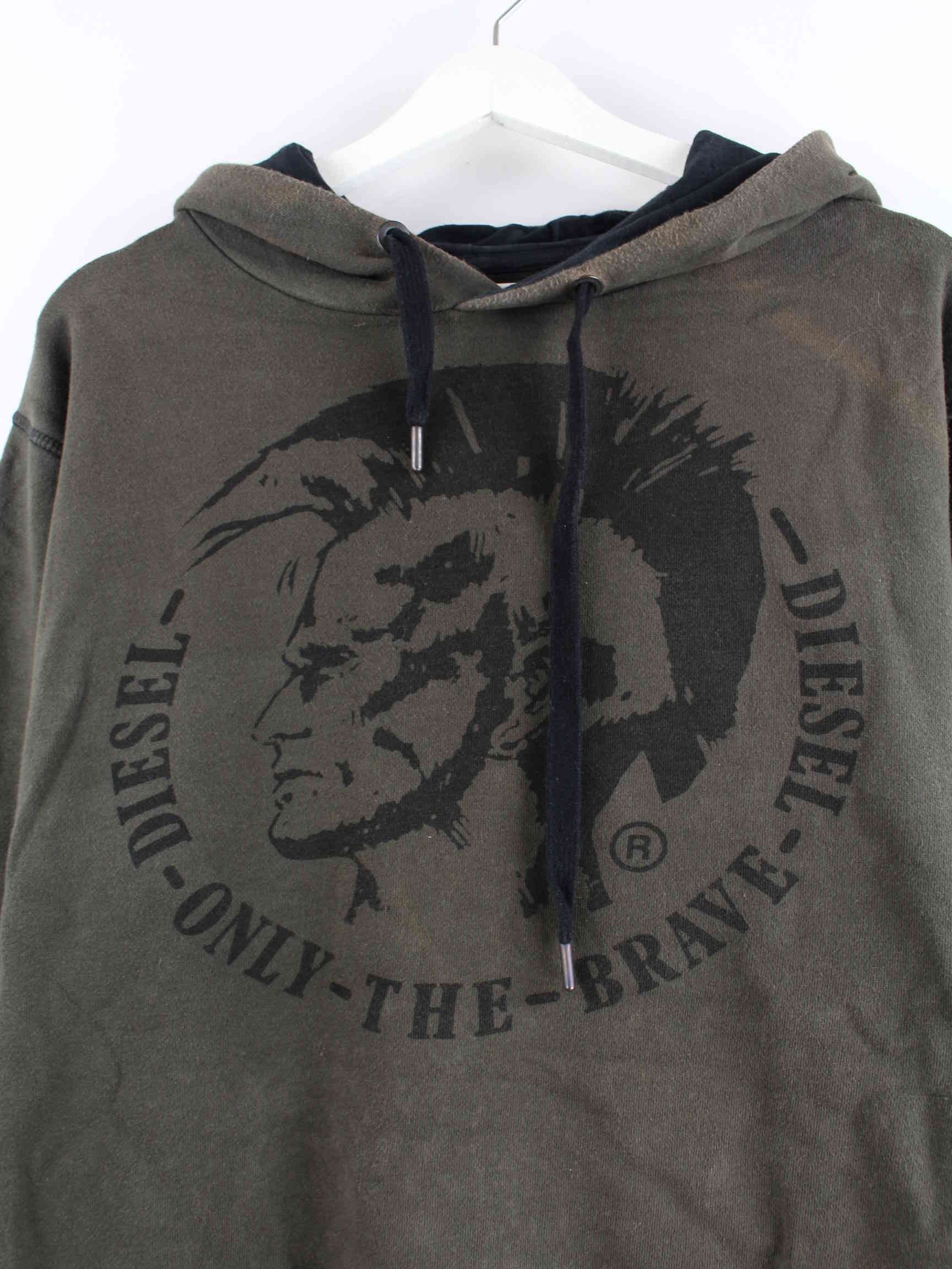 Brown hoodie from the Diesel label in size L. It is made from a cotton blend and is available from us in good condition. With a chic Apache print.