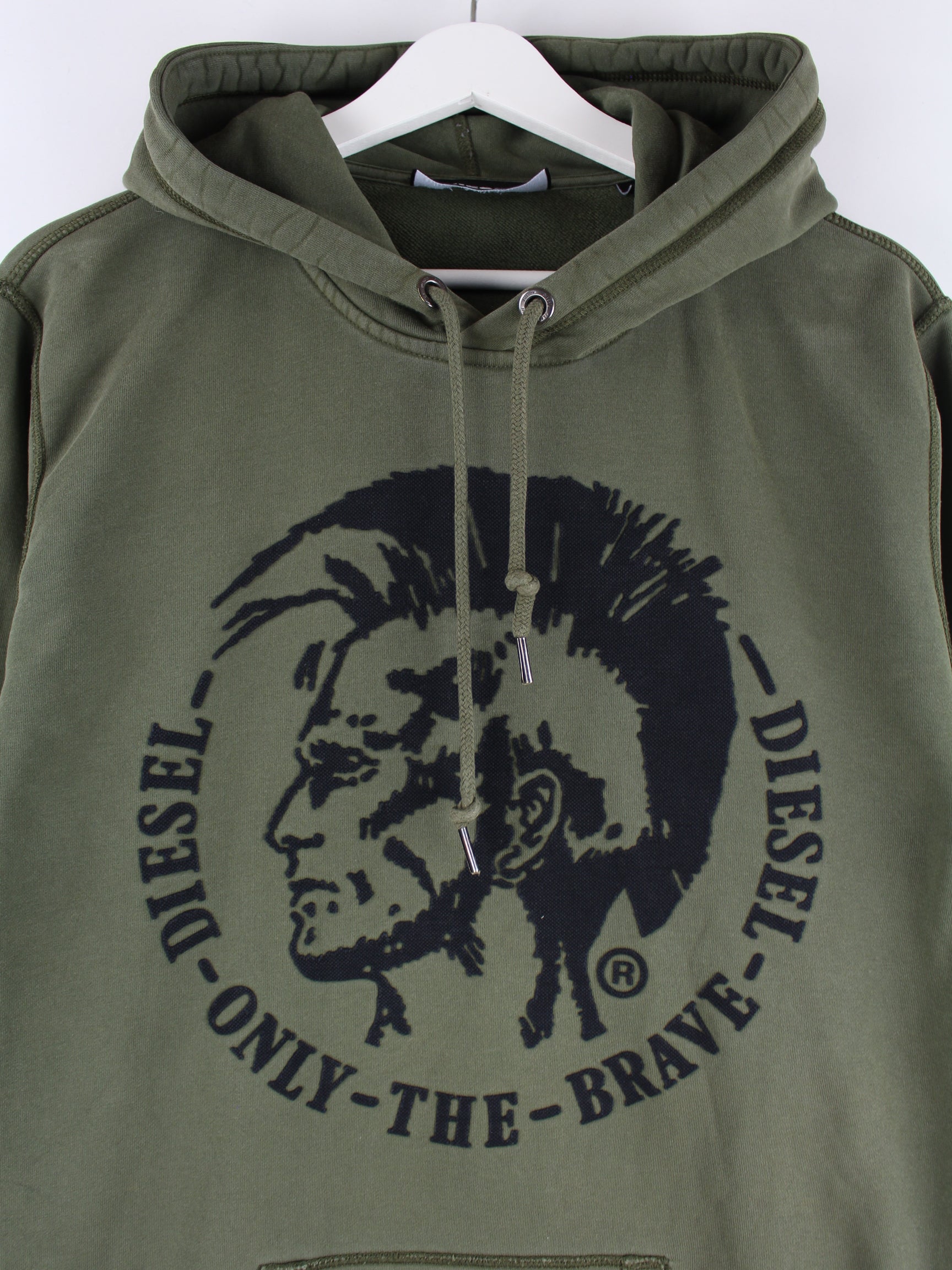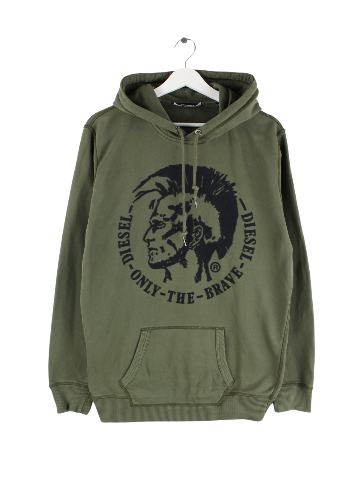 Grüner Hoodie vom Label Diesel in Größe S. Er ist aus einer Baumwollmischung gemacht und in sehr gutem Zustand im Bestand. Mit seltenem Print.