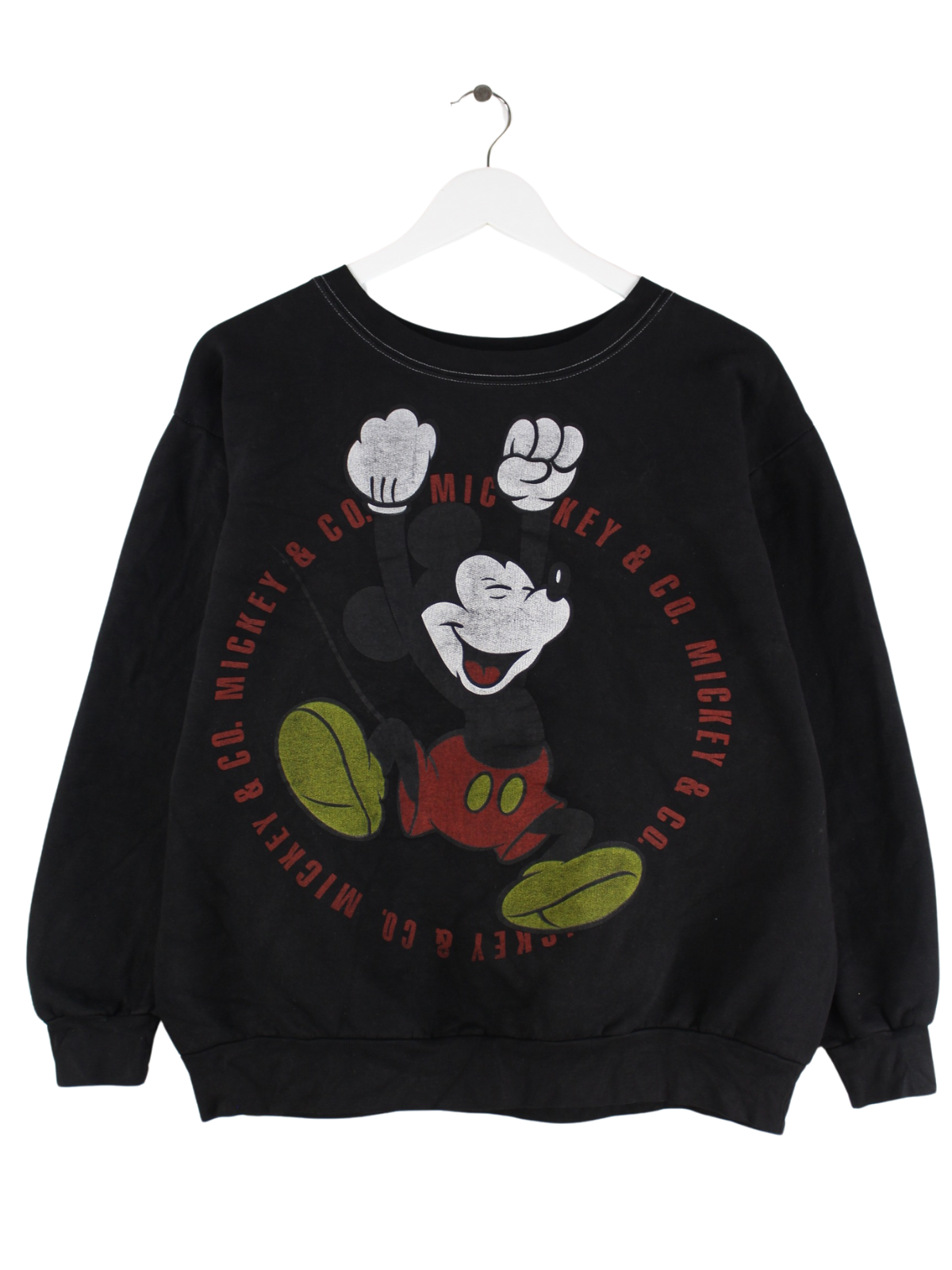 Disney Damen 00s Mickey Mouse Print Sweater Schwarz S