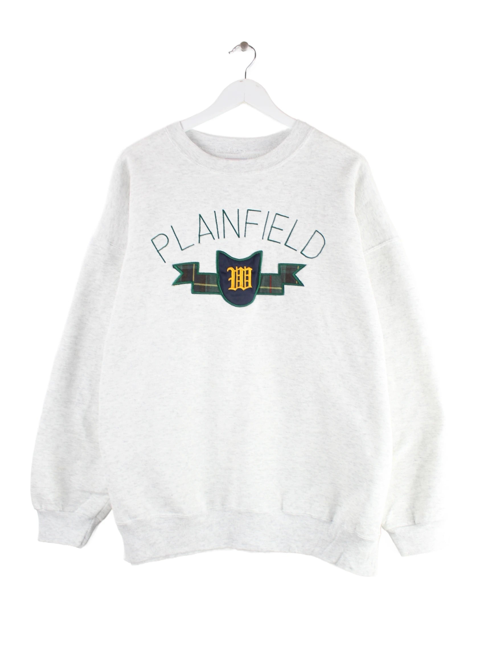 Sweater vom Brand Dodger in Größe XL aus den 90'ern. Er ist aus einer Baumwollmischung und in Grau auf Lager. Mit seltenem Plainfield Print.
