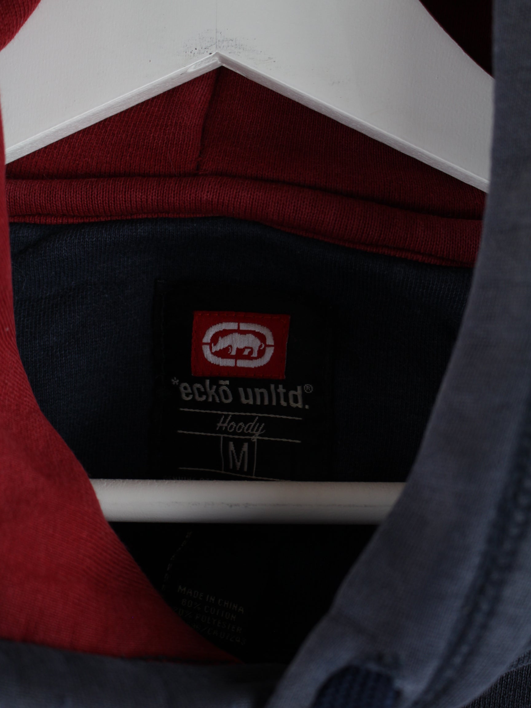 Hoodie from the brand Ecko with embroidery in size M. It is made from a cotton blend and is available in grey.