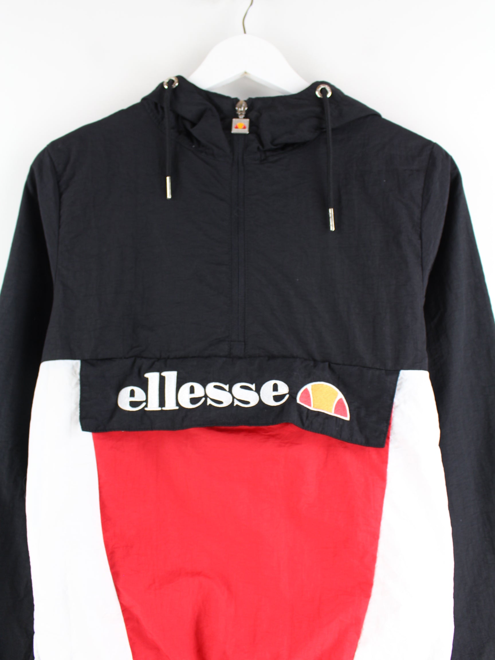 Lightweight jacket from the Ellesse brand with embroidered motifs in size XS. It is made of synthetic material and is in stock in black.