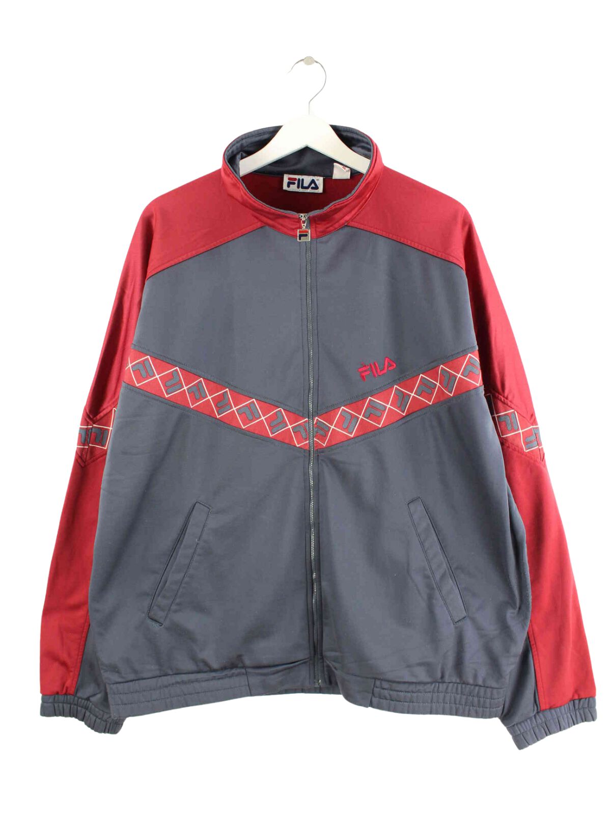 Training jacket from Fila in size XL from the 90s. It is made of synthetic and is available in gray.