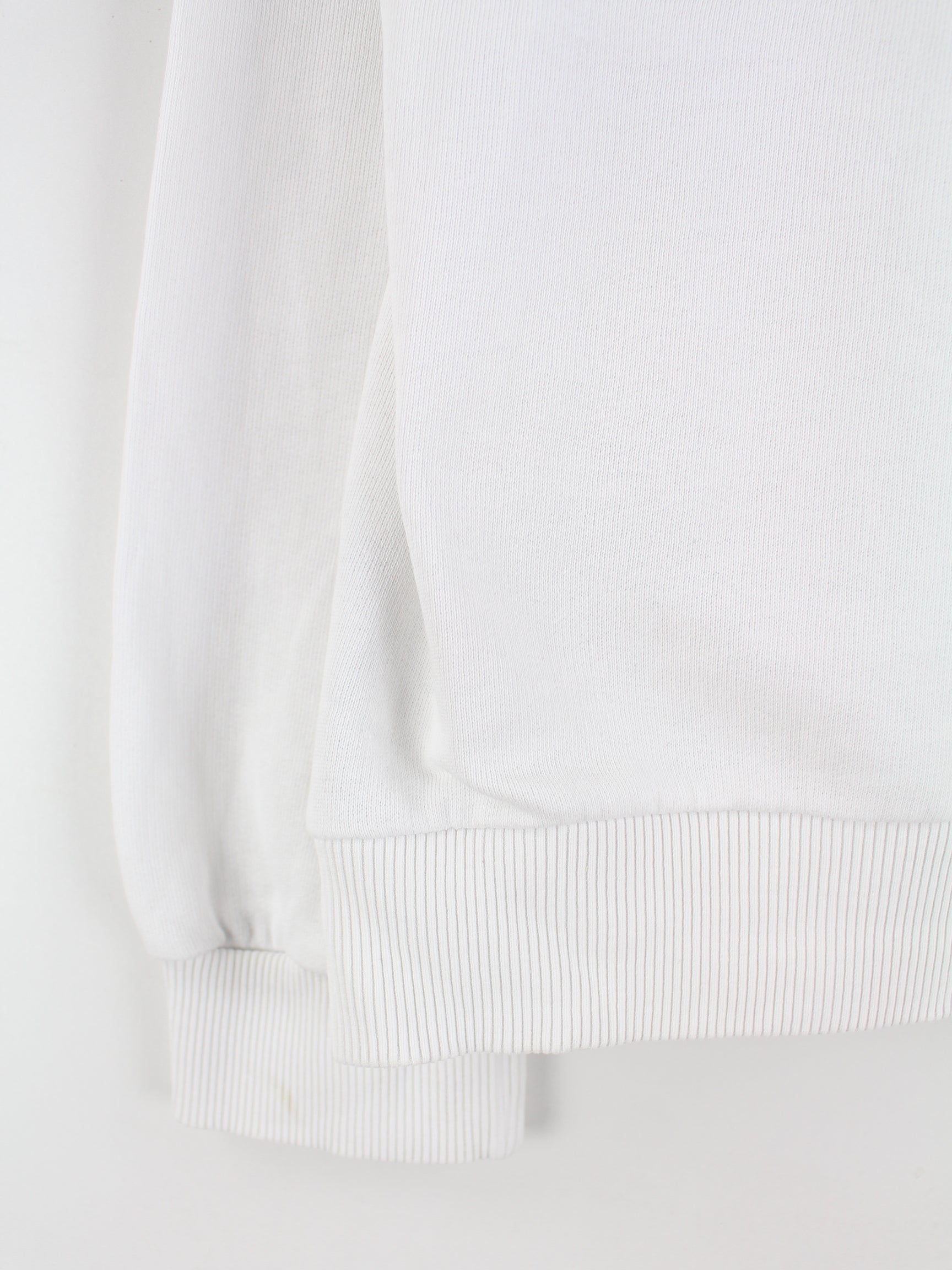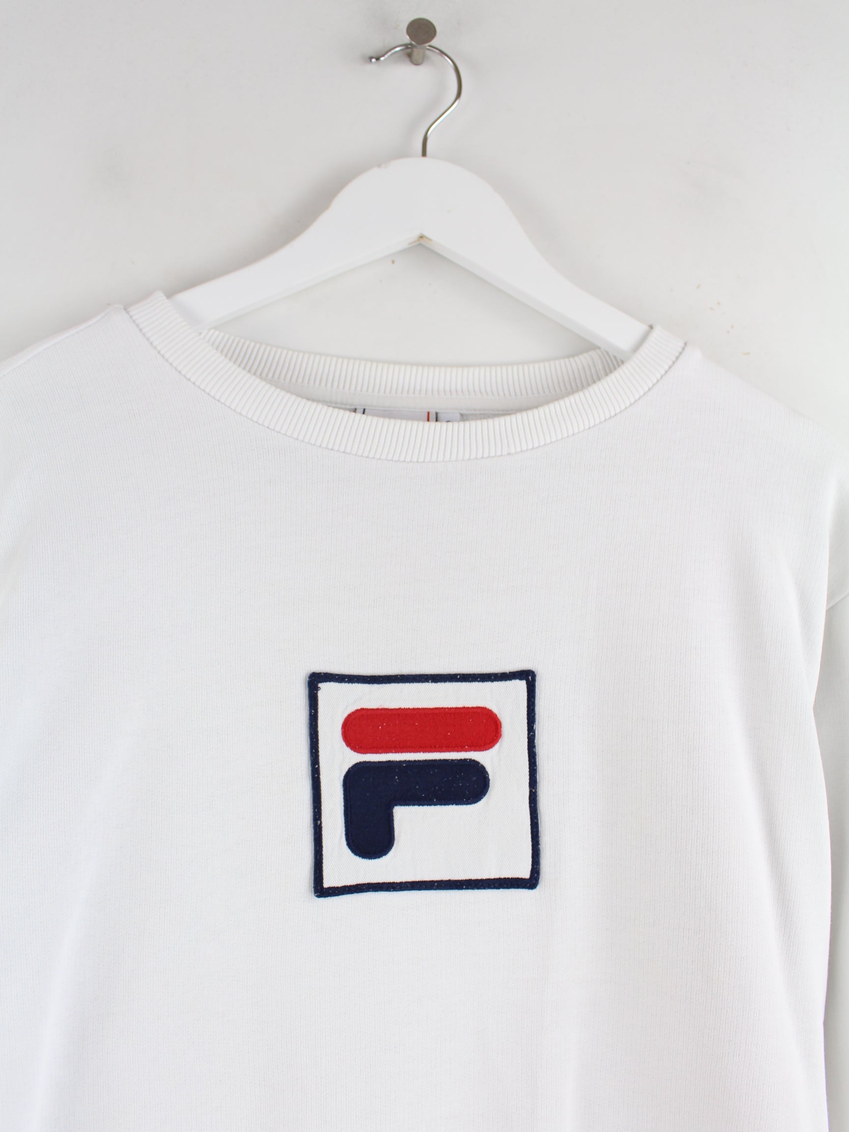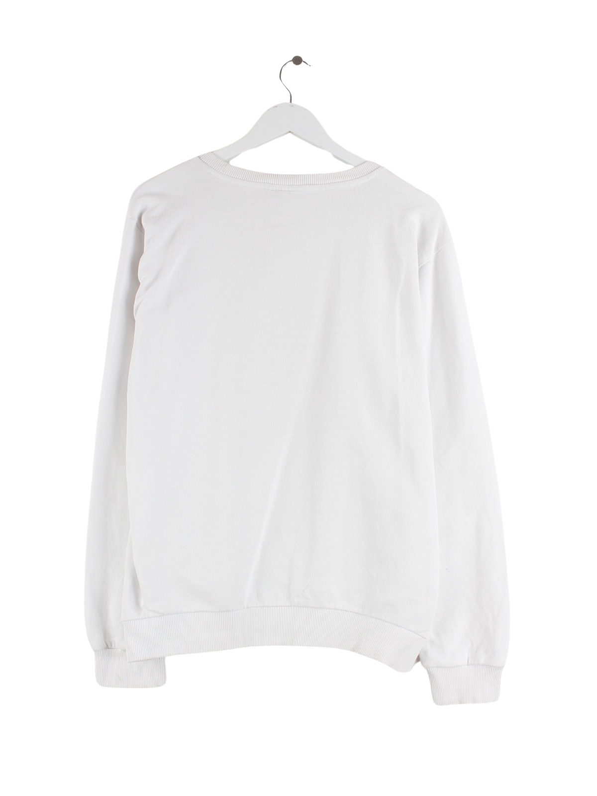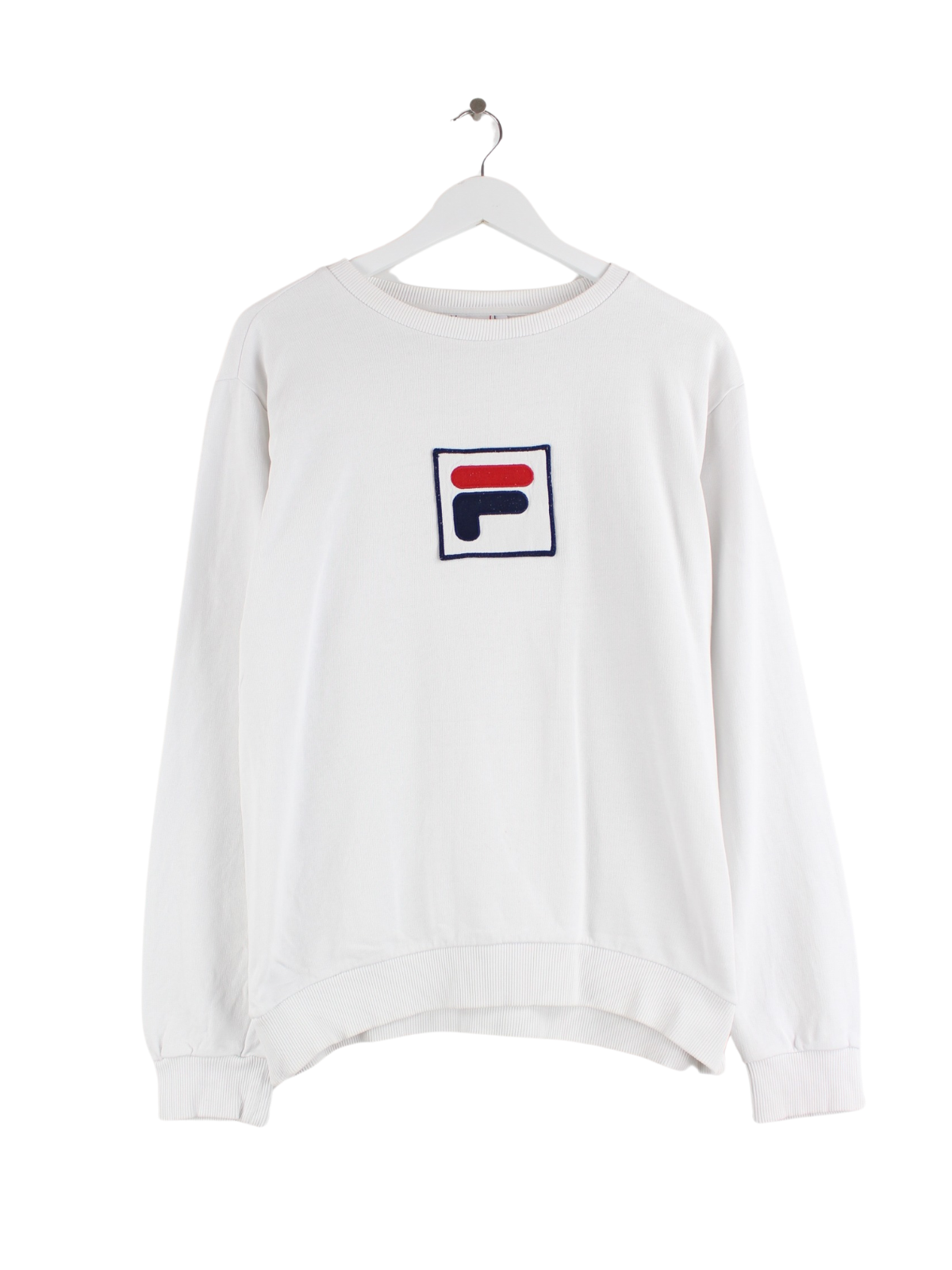 White sweater with embroidered motifs from the Fila label in size S. It is made of a cotton blend and is in good condition.