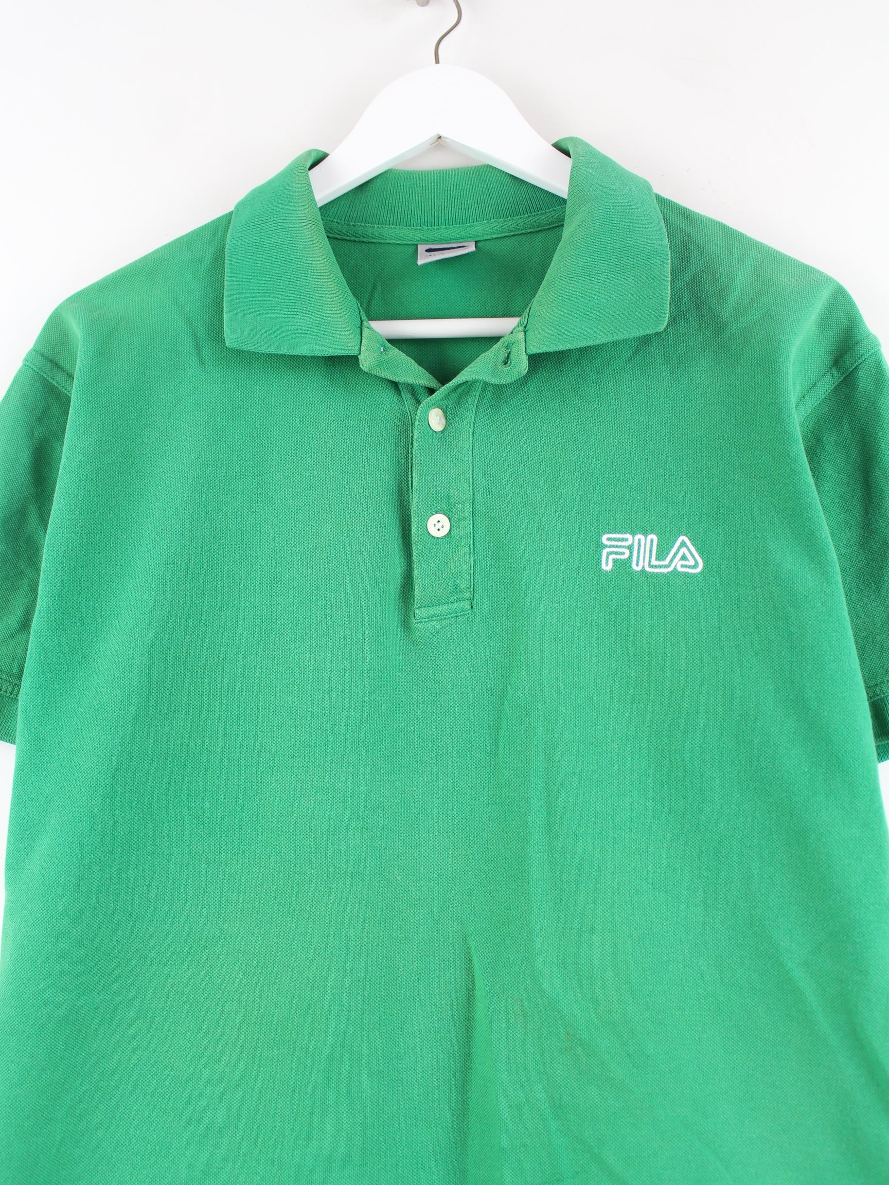 Polo shirt from the Fila brand with embroidery in size M. It is made of cotton and is available from us in green.