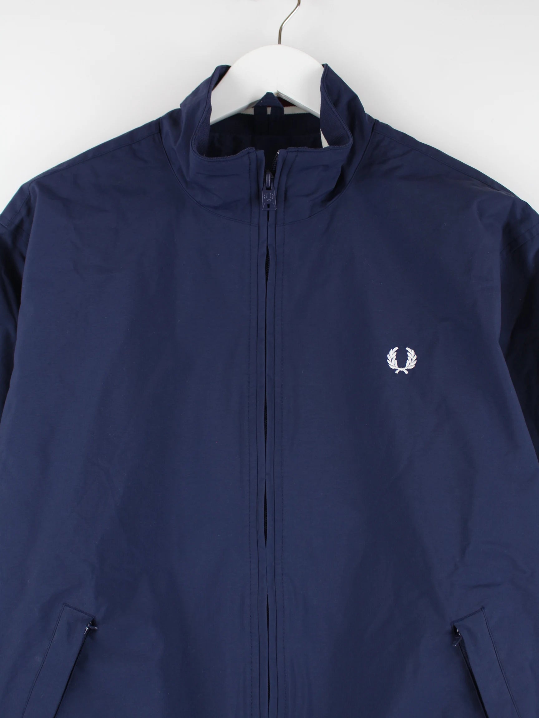 Leichte Jacke vom Label Fred Perry in Größe M. Sie ist aus Synthetik gemacht und in Blau auf Lager.
