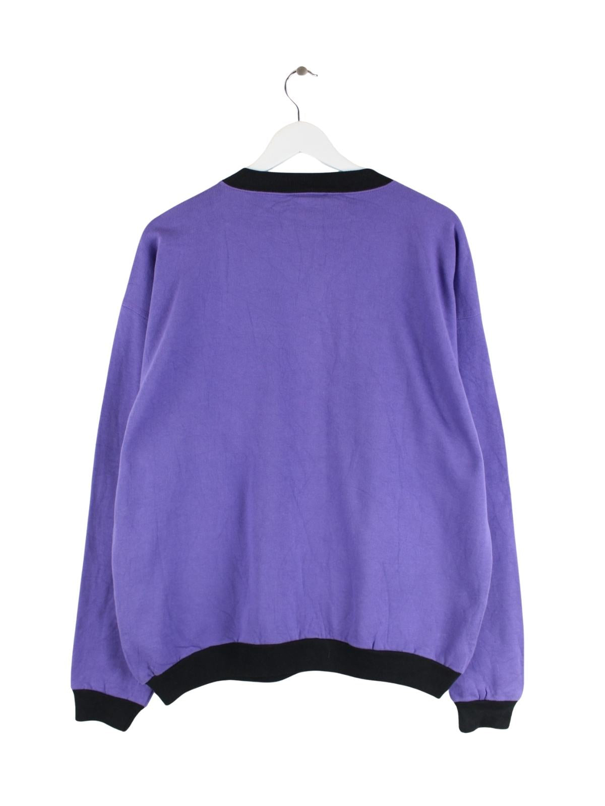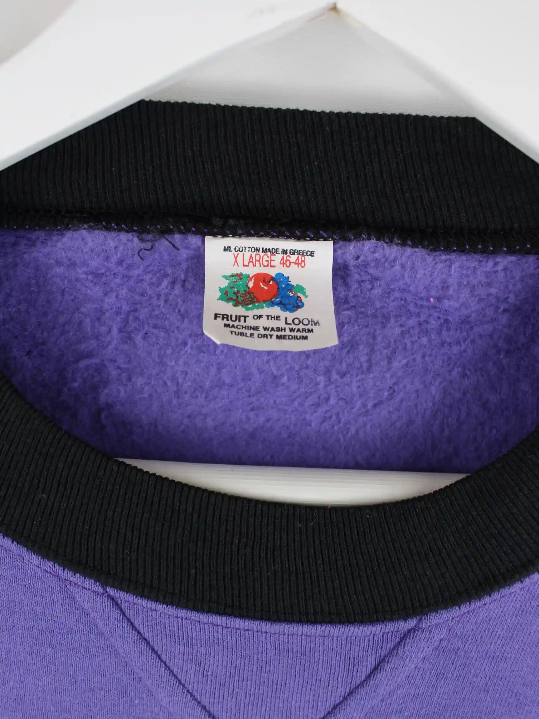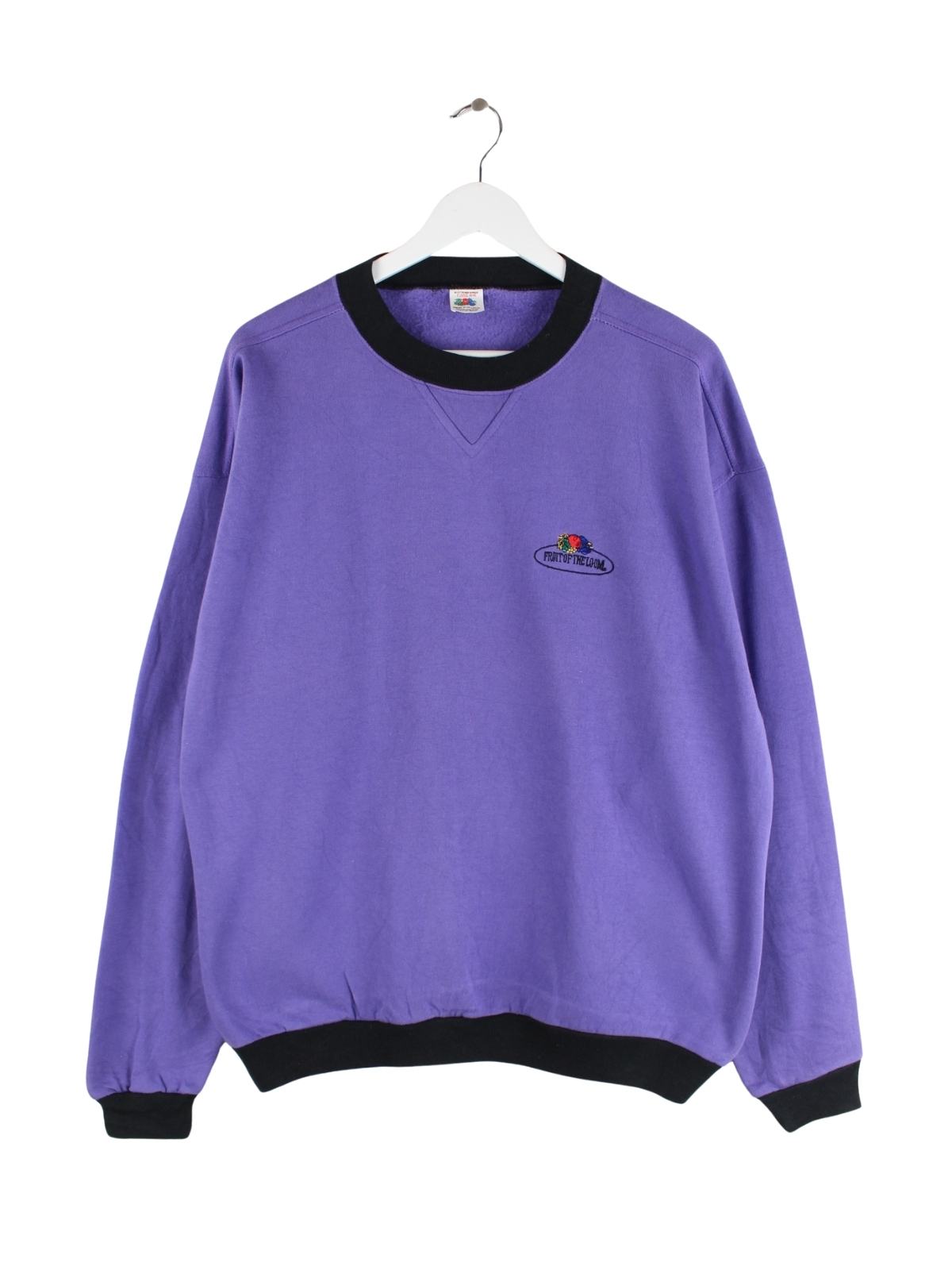 Lilafarbener Sweater von Fruit of the Loom aus den 80'ern in Größe XL. Er ist aus einer Baumwollmischung angefertigt und in sehr gutem Zustand vorrätig.