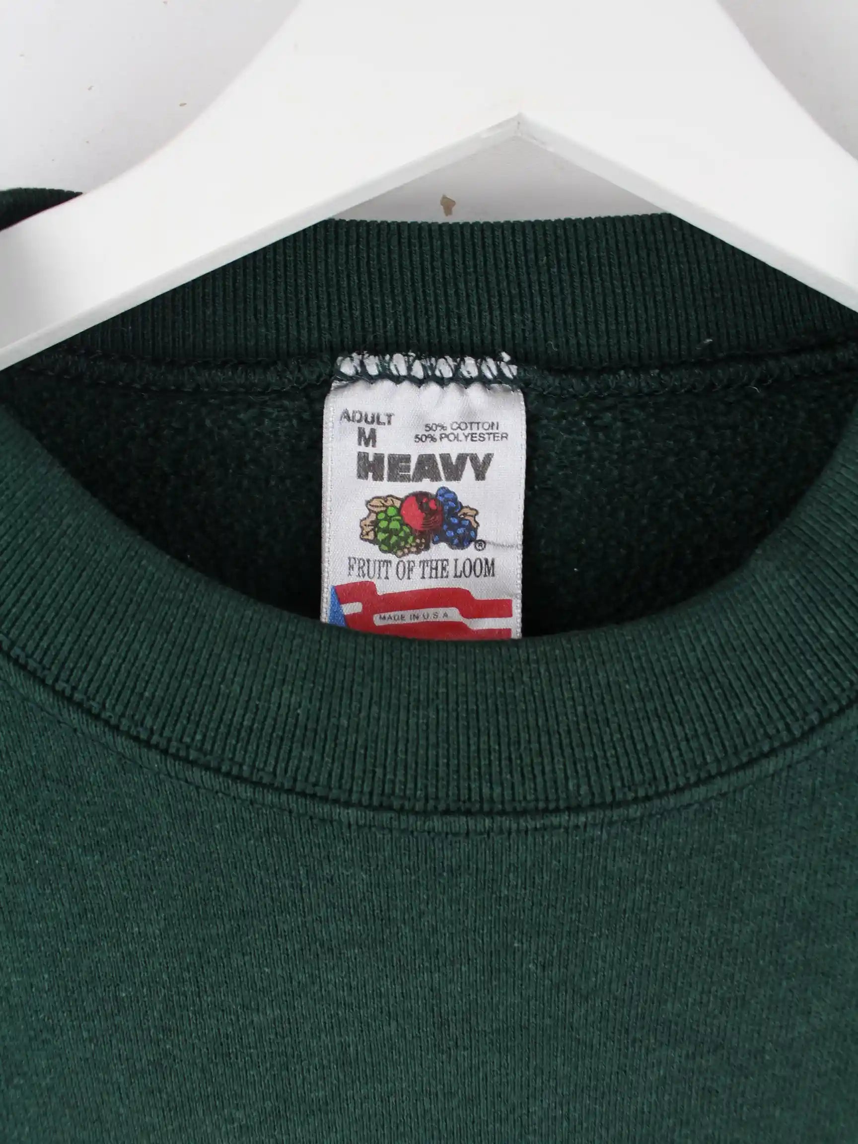 Grüner Sweater vom Brand Fruit of the Loom aus den 90'ern in Größe M. Er ist aus einer Baumwollmischung angefertigt und in sehr gutem Zustand zu bekommen.