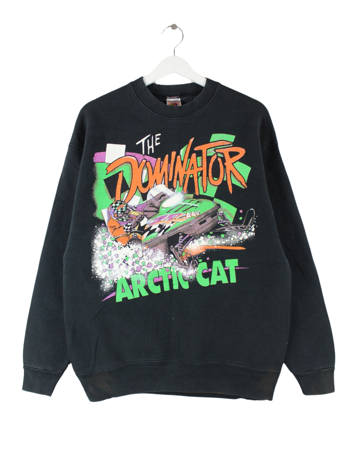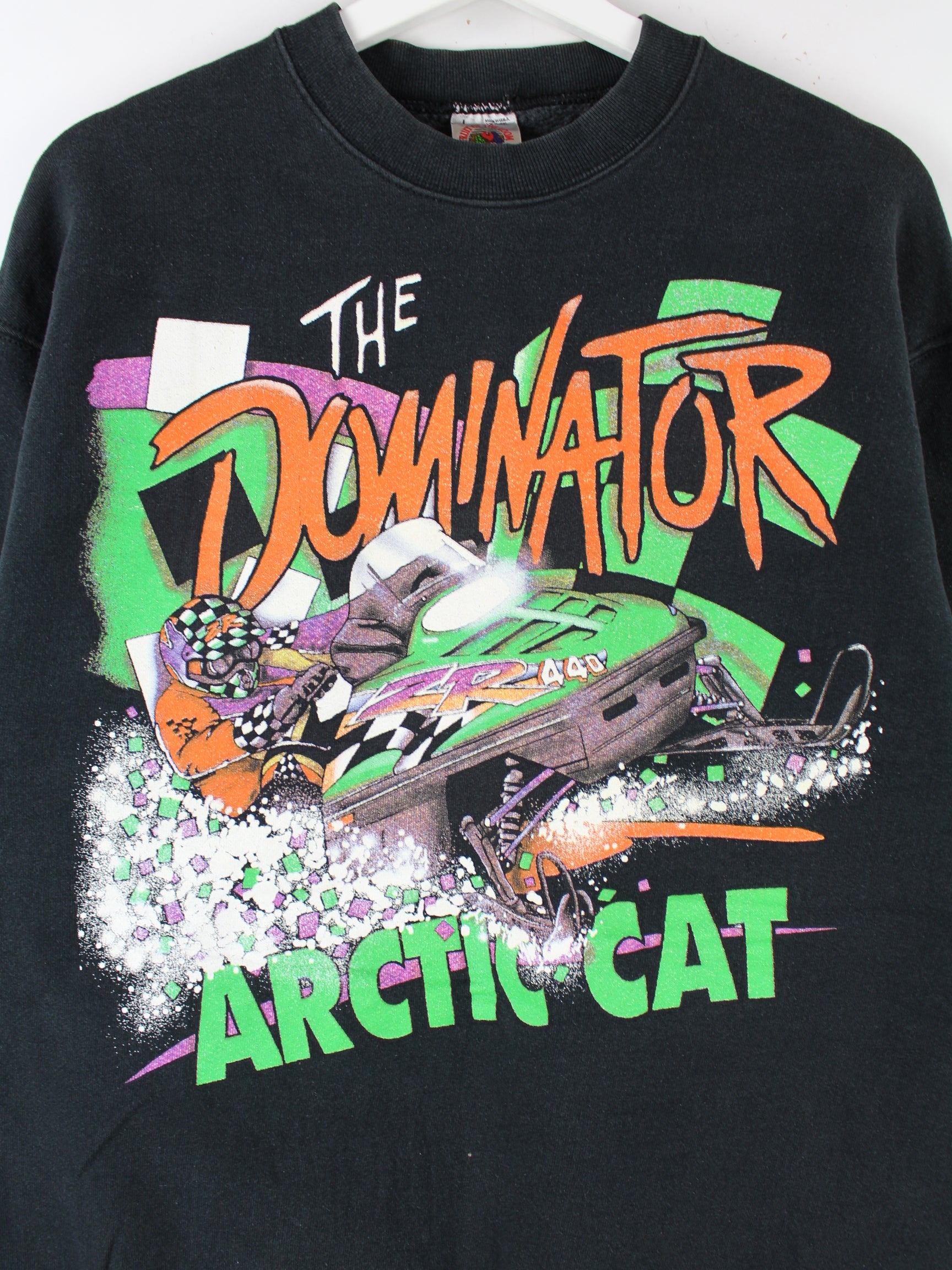 Fruit of the Loom 90s Vintage Arctic Cat Dominator Print Heavy Sweater Schwarz L